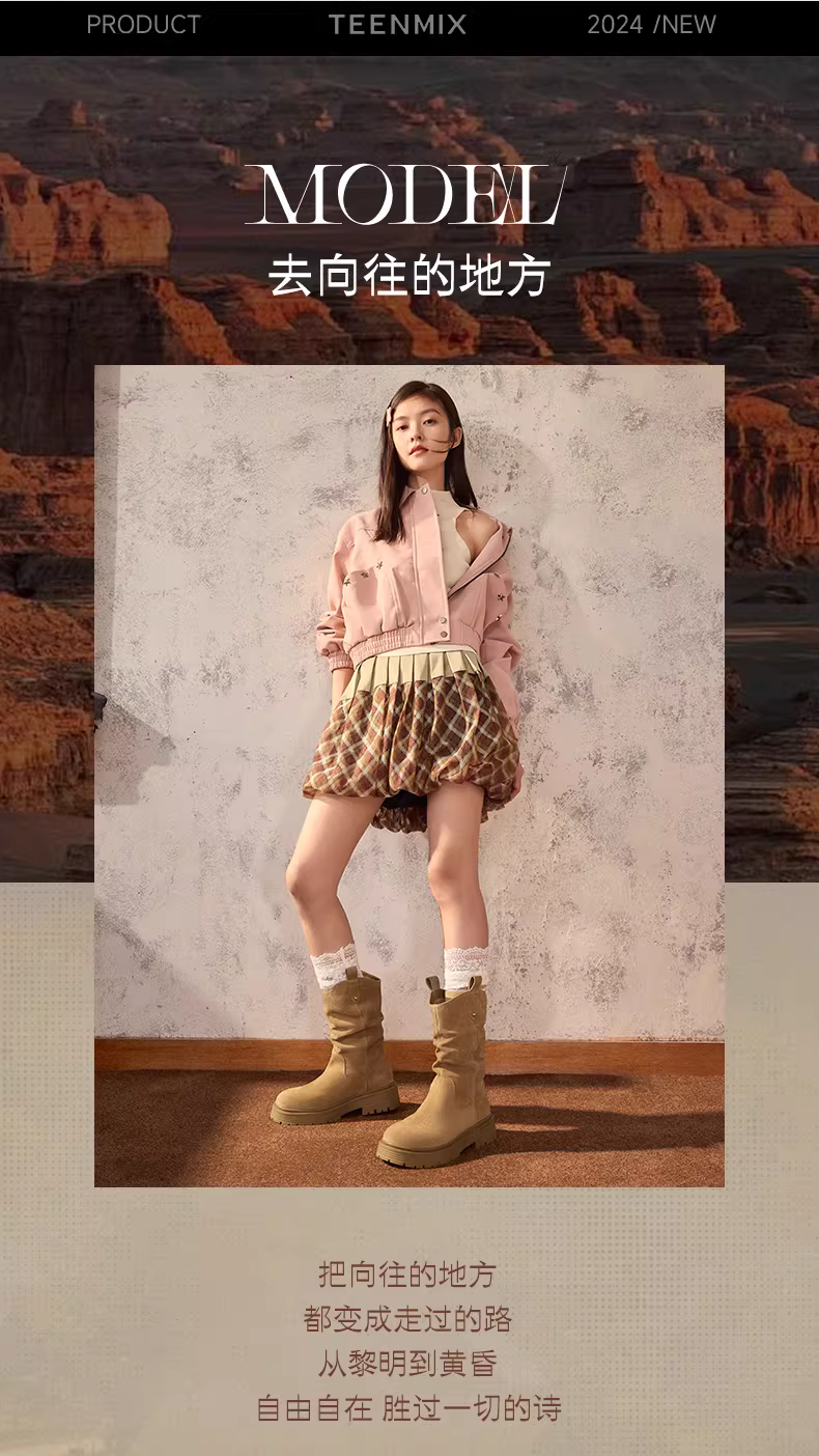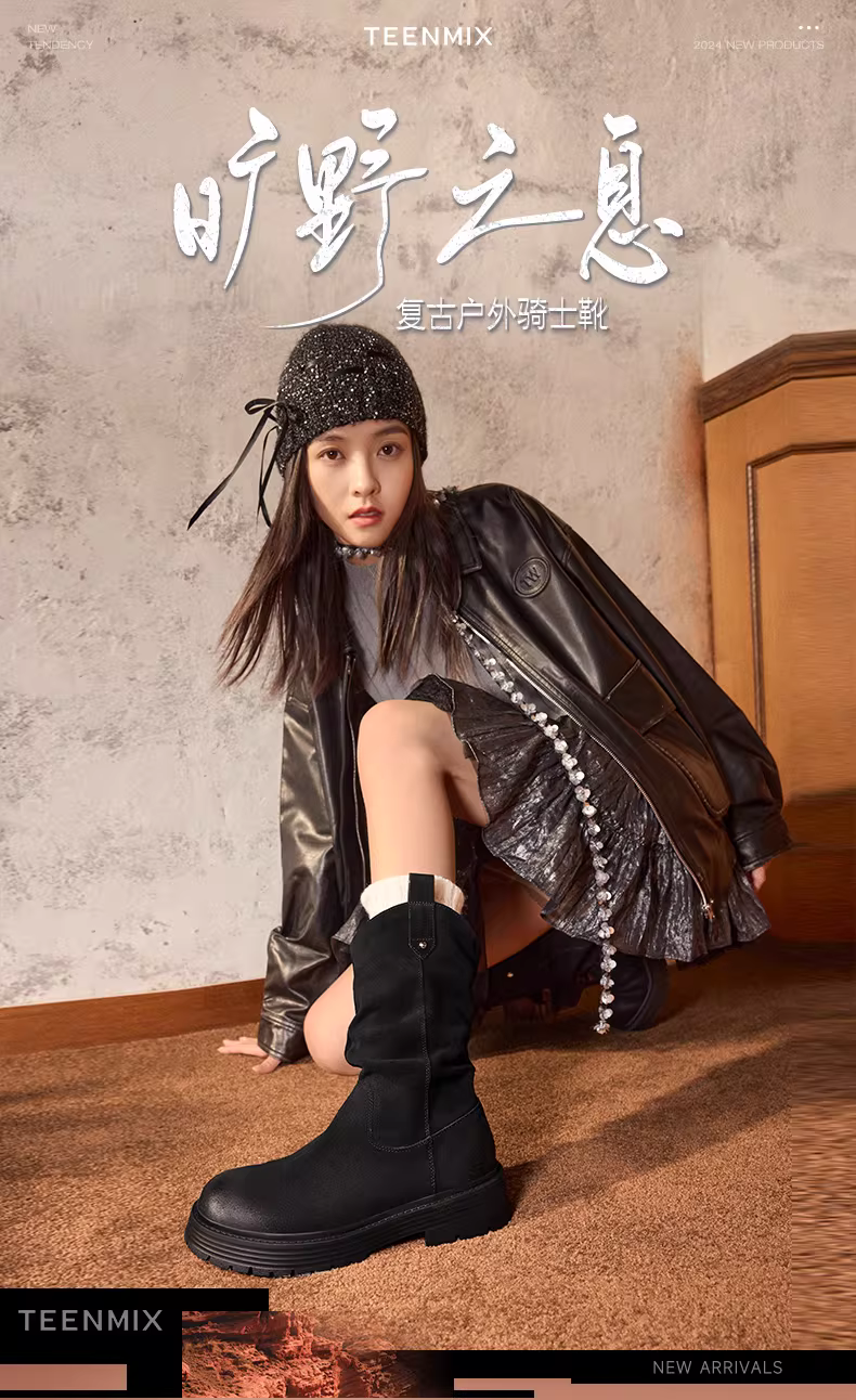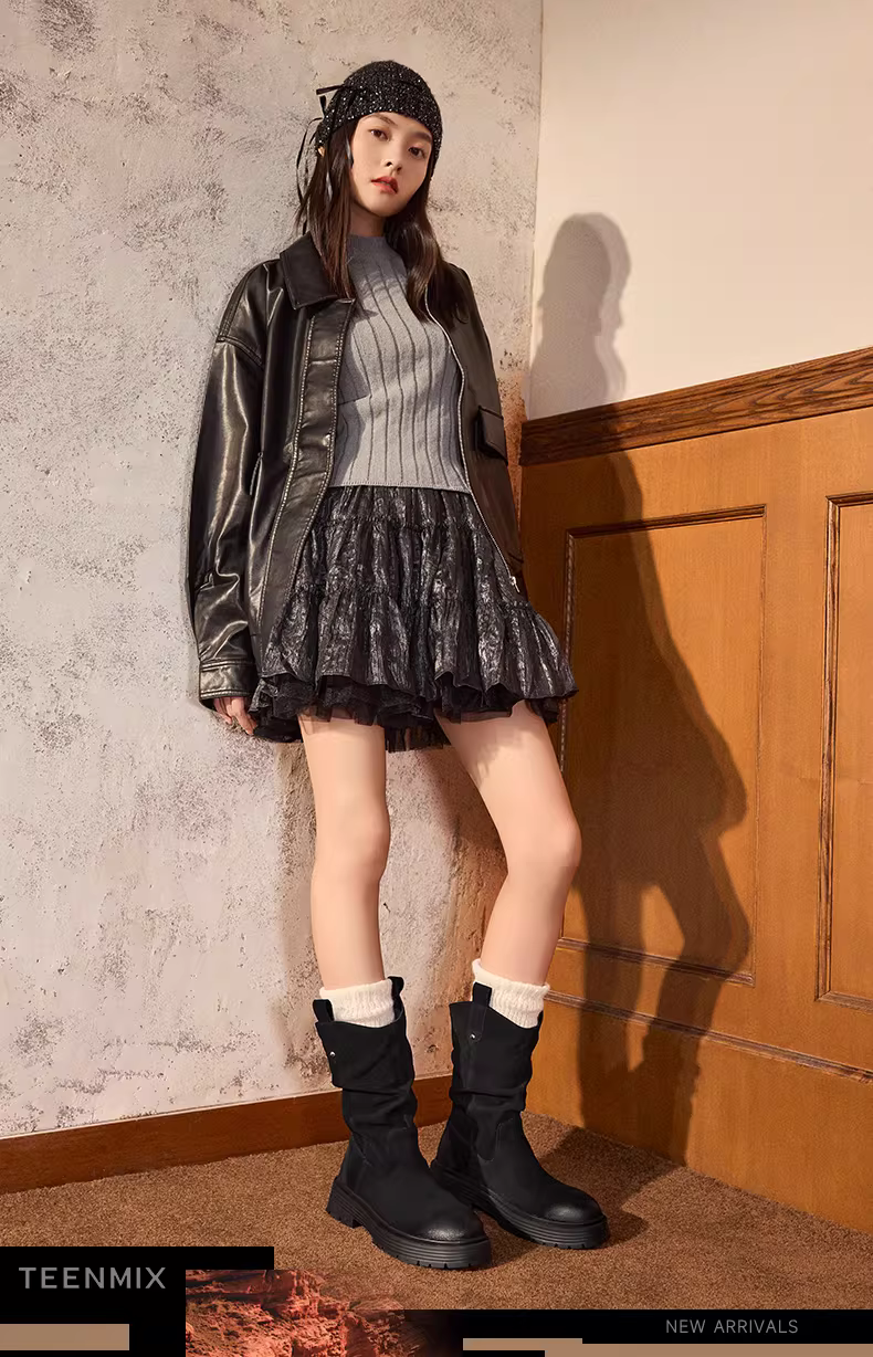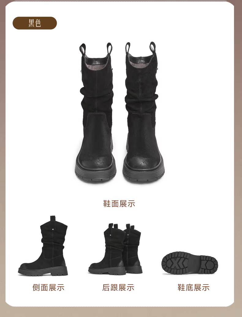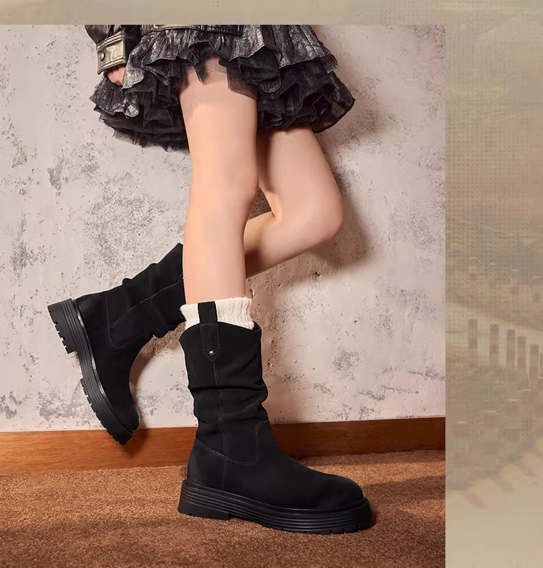 - Giày bốt cổ điển kiểu phương Tây Tianmeiyi có lông cừu, bốt cưỡi ngựa dành cho nữ, bốt xếp chồng, bốt ngắn đế dày, mẫu mùa đông mới CQ963DS4
