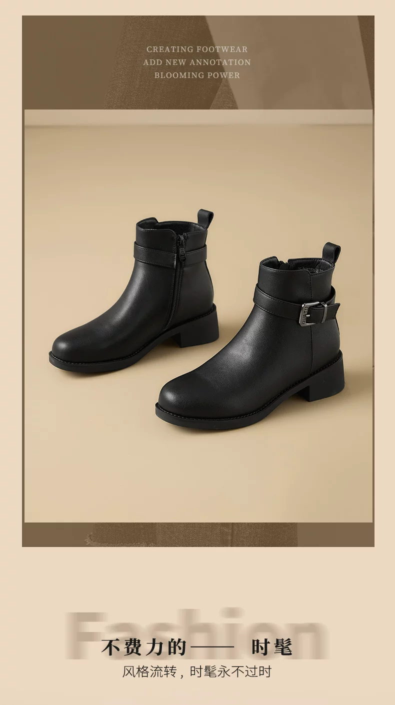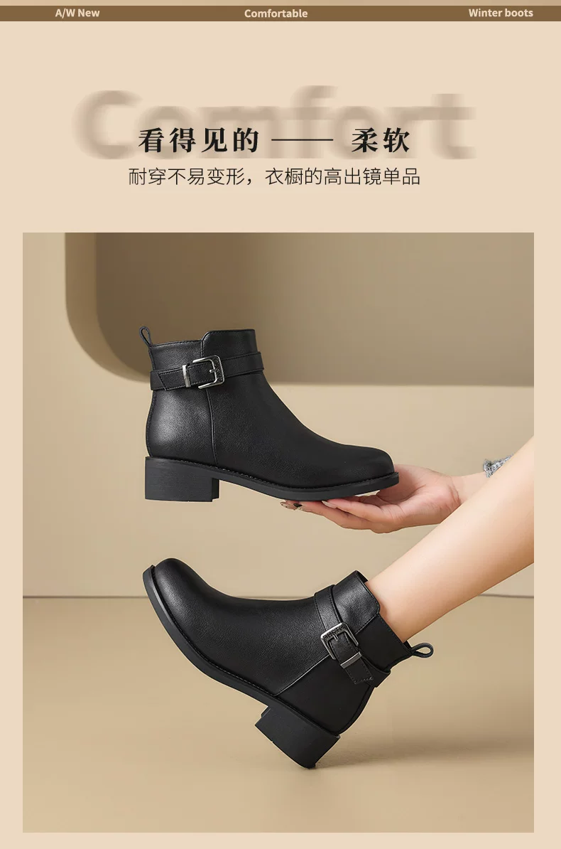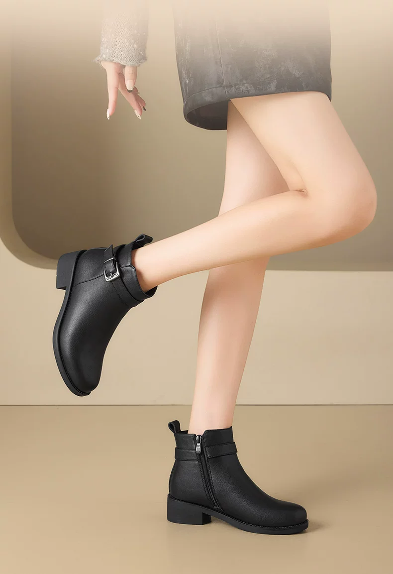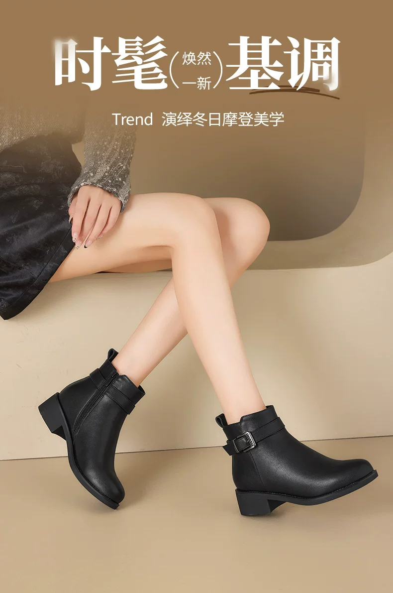 - Giày bốt cổ ngắn đế thô màu đen Dadong dành cho nữ, mẫu mới thu đông 2025, kiểu Chelsea, ôm chân, ngắn.
