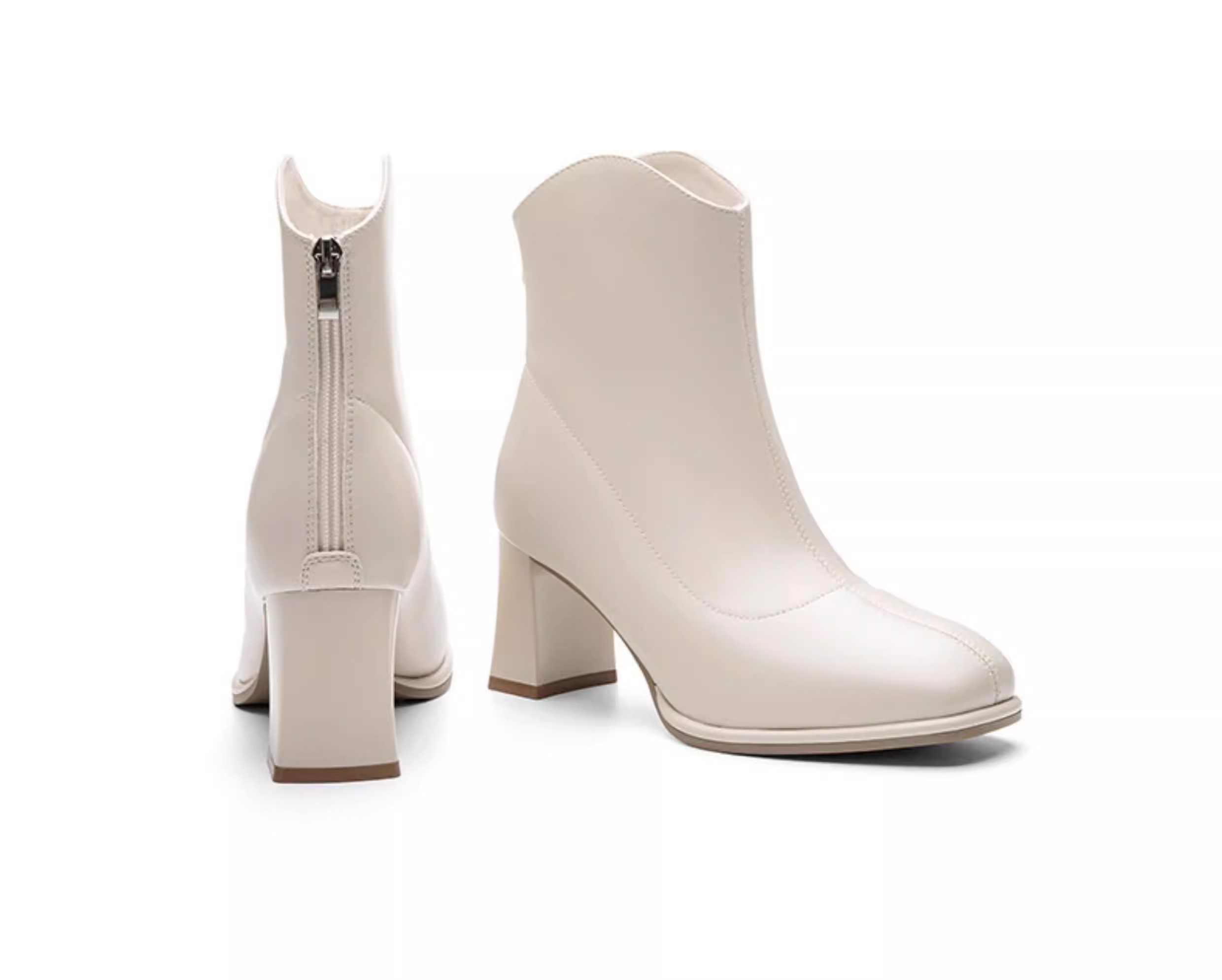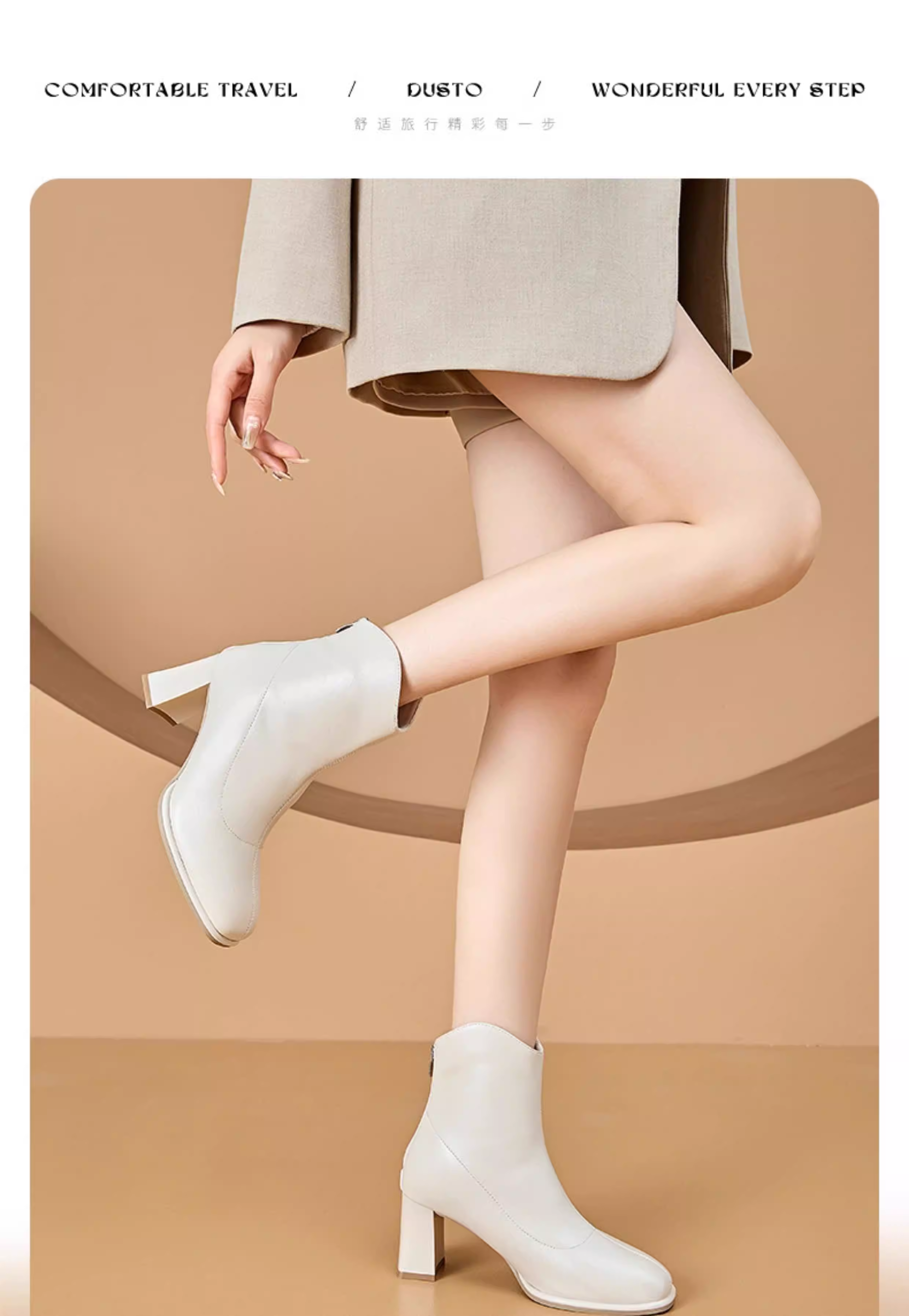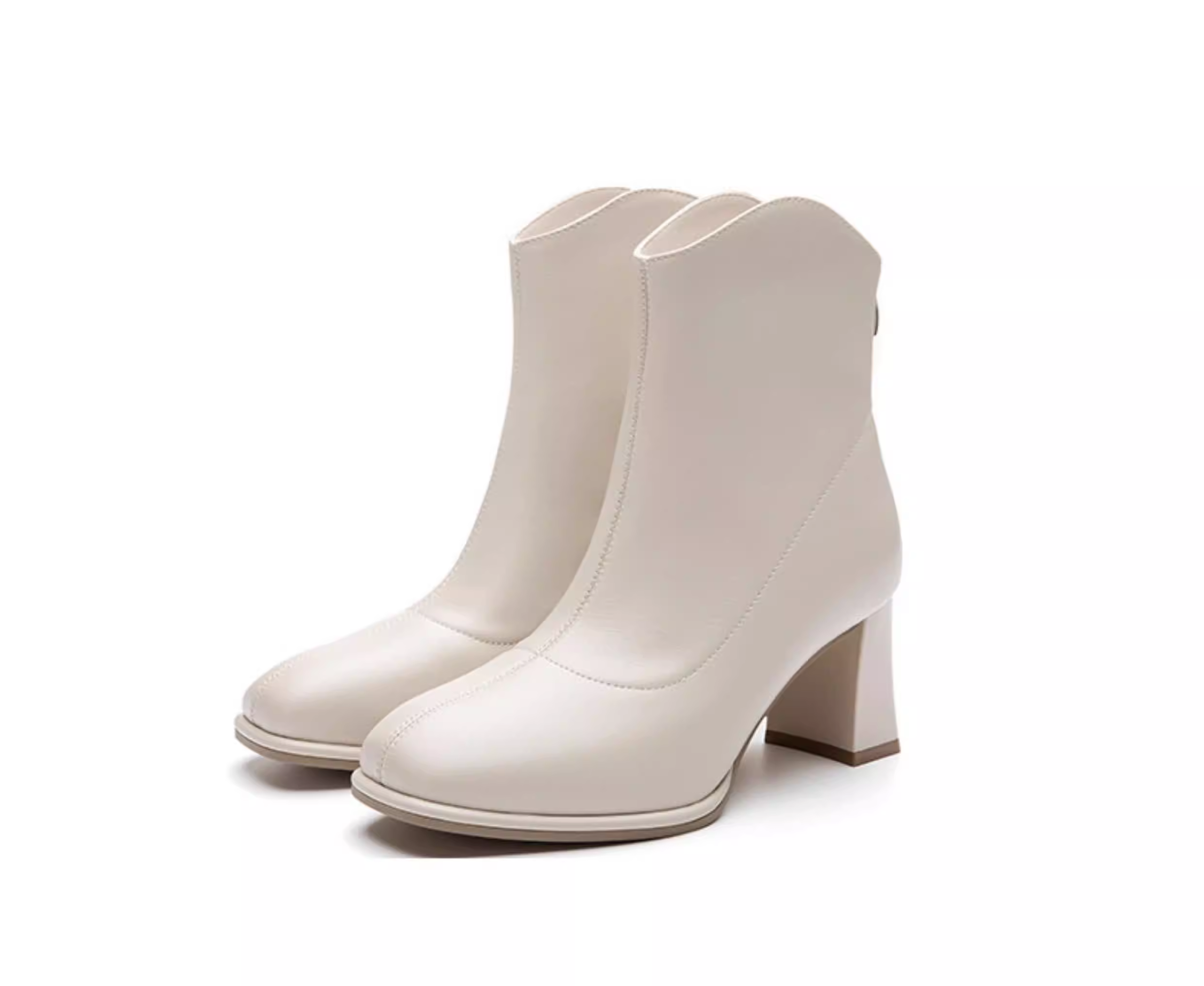 - Giày bốt cổ ngắn màu trắng phong cách Pháp Dadong dành cho nữ 2025 mới mùa thu đông lót lông cừu gót vuông cao gót giày bốt mũi vuông cổ ngắn ôm sát chân