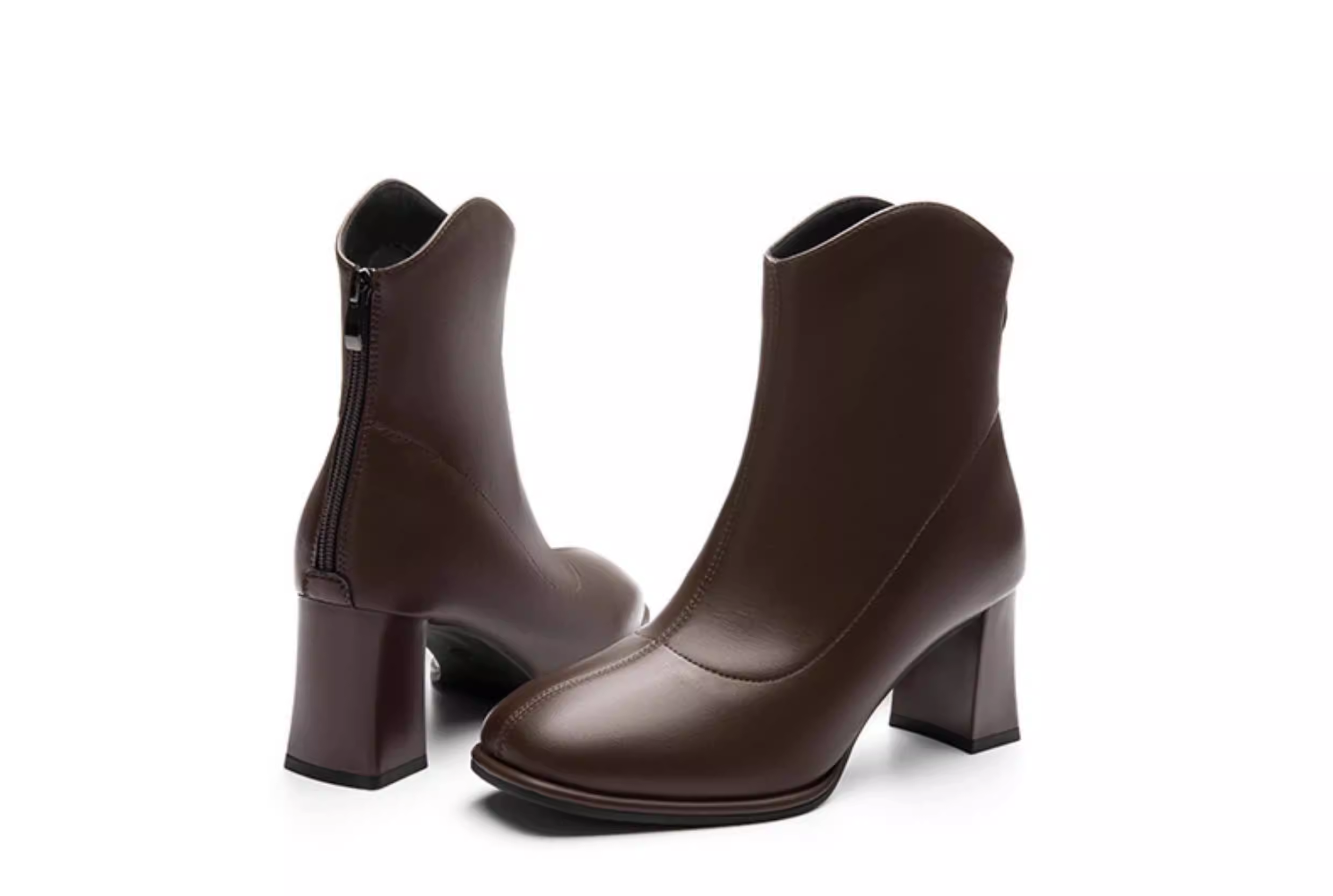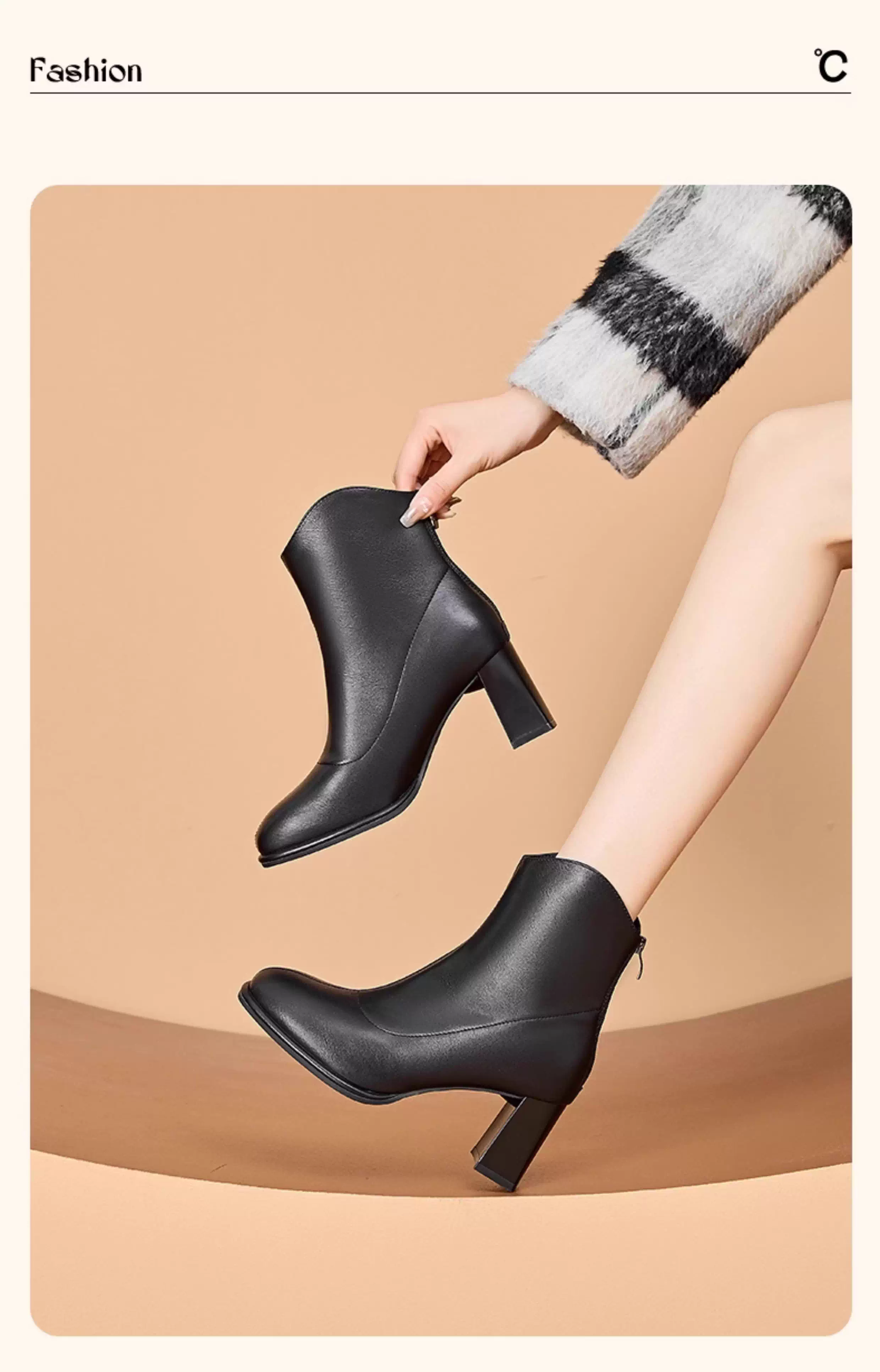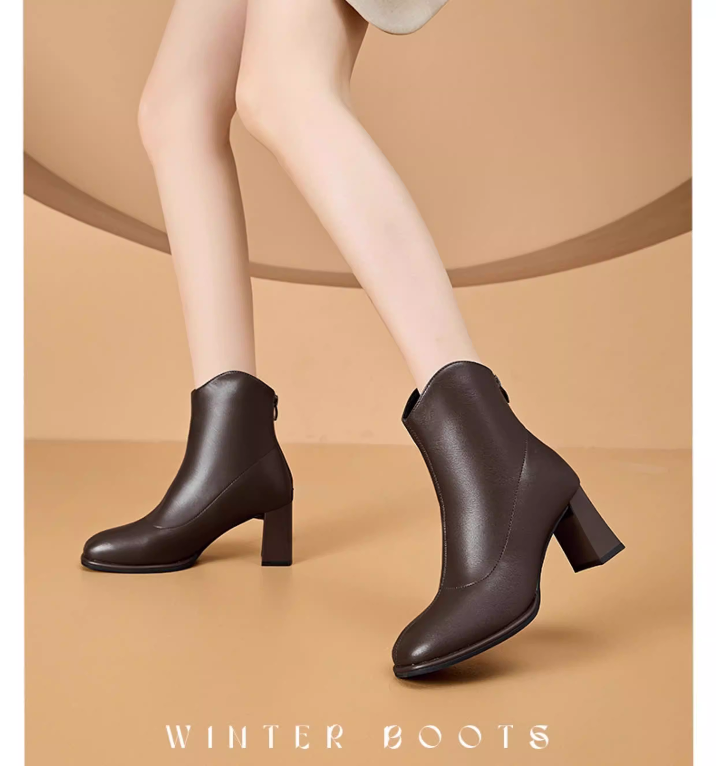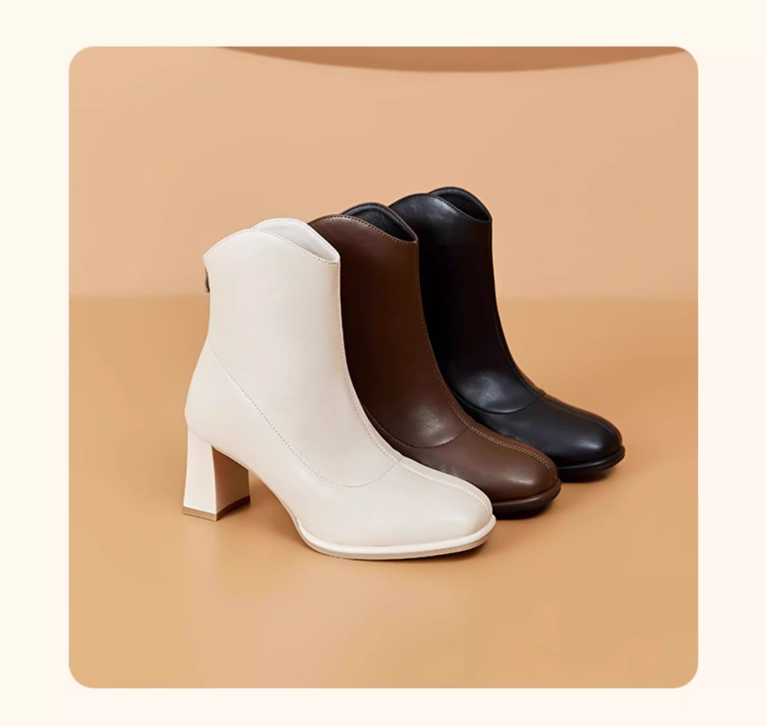 - Giày bốt cổ ngắn màu trắng phong cách Pháp Dadong dành cho nữ 2025 mới mùa thu đông lót lông cừu gót vuông cao gót giày bốt mũi vuông cổ ngắn ôm sát chân
