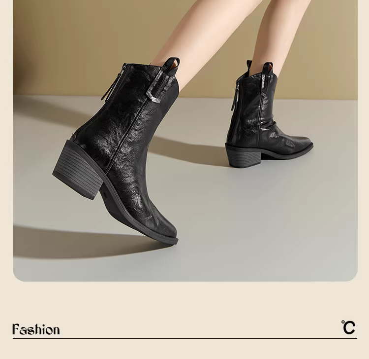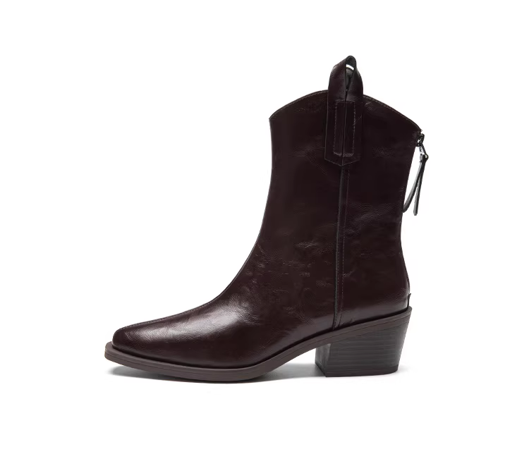- Giày bốt cổ ngắn mũi nhọn kiểu Pháp retro Dadong dành cho nữ, mẫu mới thu đông 2025, lót lông, kiểu cao bồi miền Tây, kiểu Chelsea