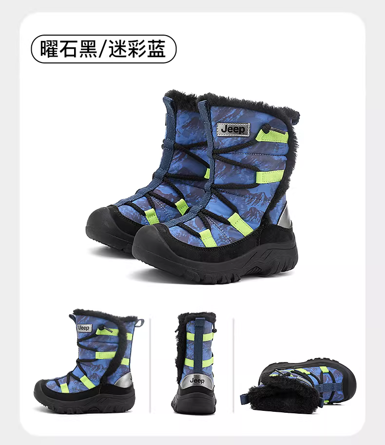 - Giày bốt cotton ấm áp cho bé trai Jeep 2025, giày tuyết trẻ em mới, giày tuyết mùa đông Đông Bắc lót lông cừu, giày cotton dày