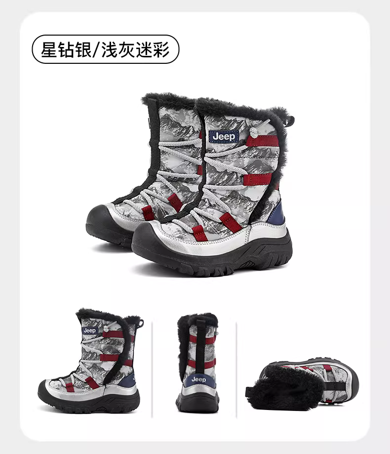 - Giày bốt cotton cao cổ cho bé trai mùa đông 2025, giày bốt tuyết trẻ em mới, giày bốt tuyết lót lông cừu Đông Bắc, giày bốt cotton cỡ lớn