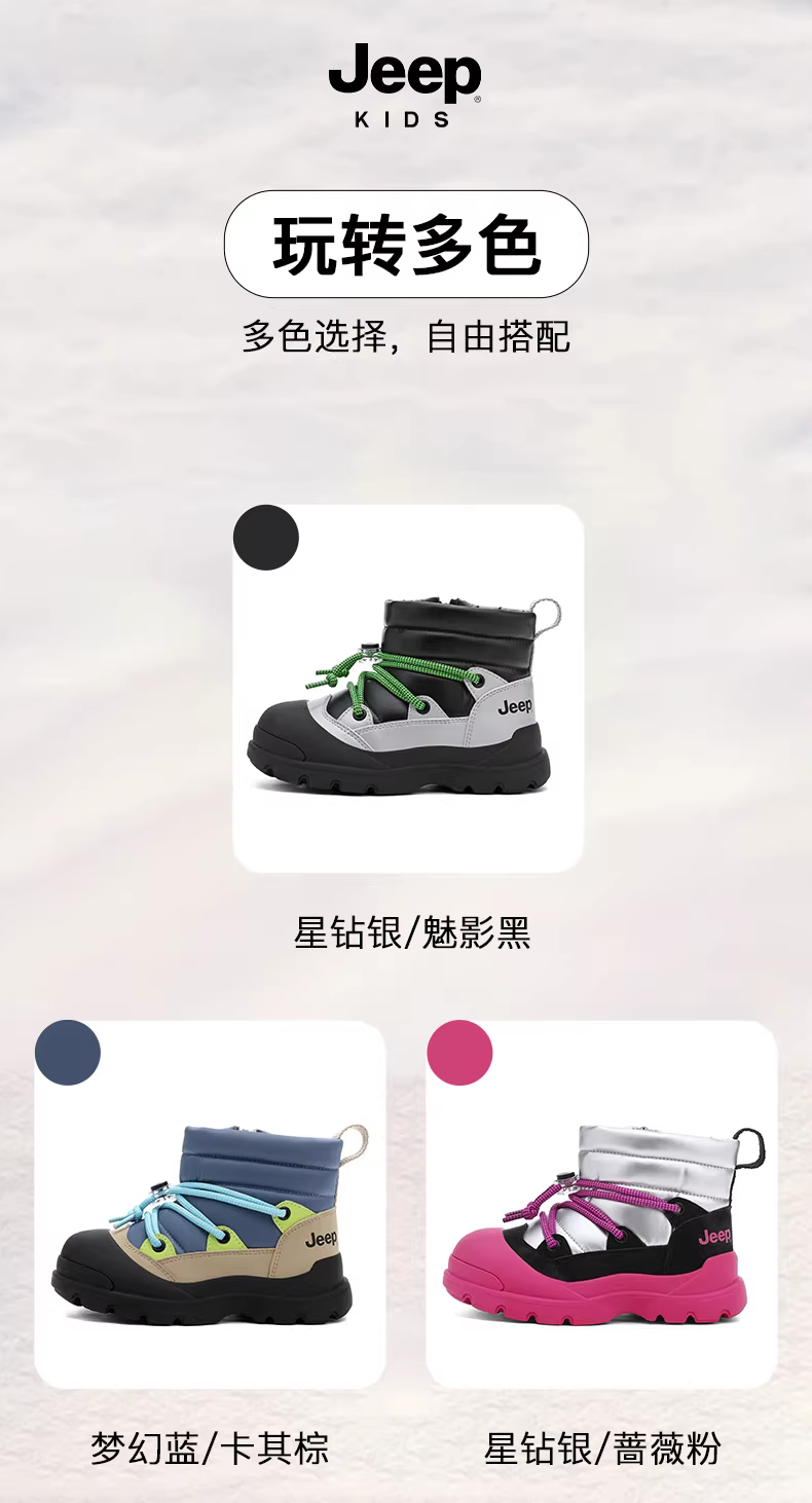 - Giày bốt cotton trẻ em Jeep có lớp lót lông cừu và giày bốt dày cho mùa đông 2025 mẫu mới giày cotton cỡ lớn cho bé giày bốt ngắn giày bốt đi tuyết cho bé trai