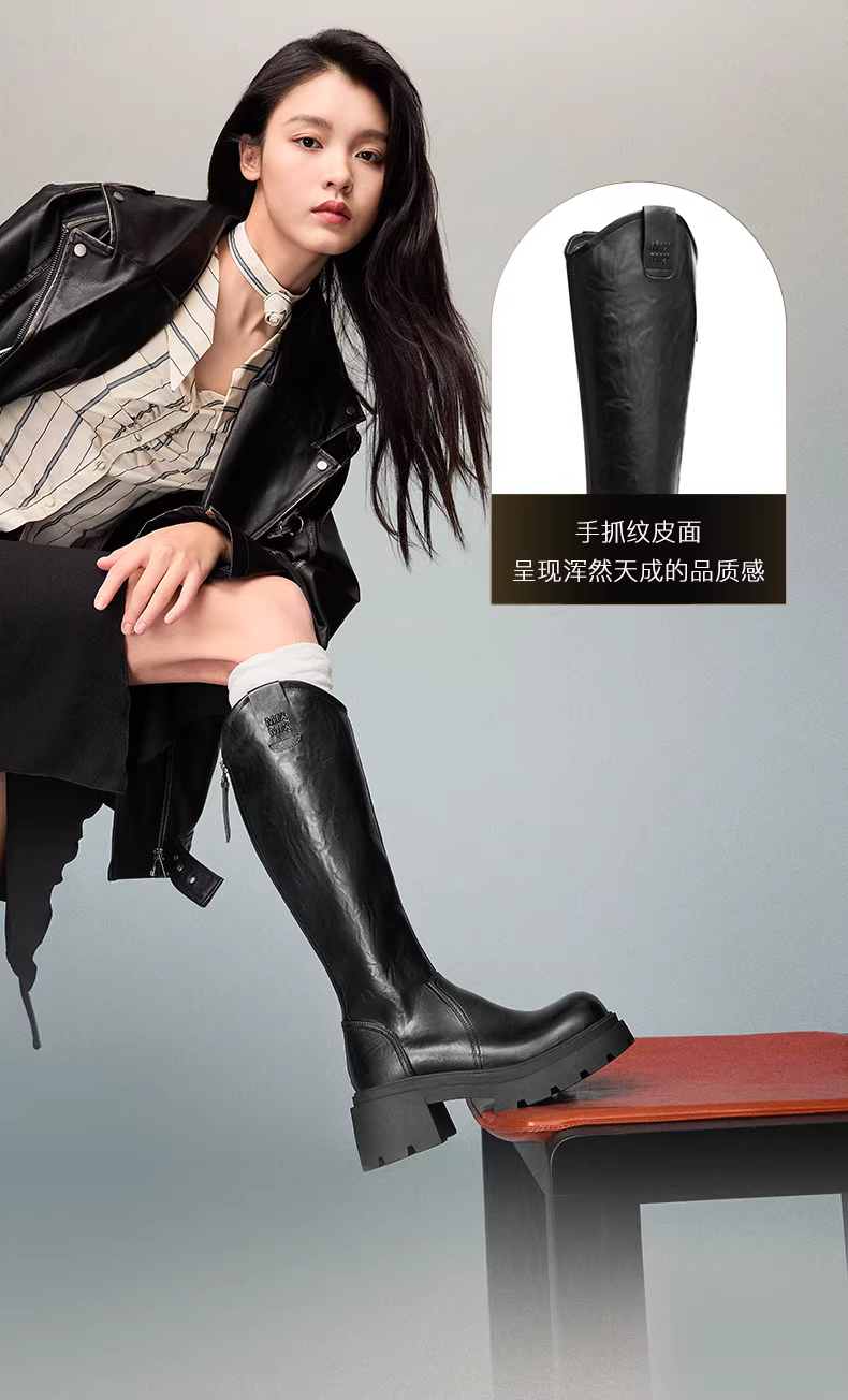 - Giày bốt cưỡi ngựa lót lông cừu đế dày kiểu cổ điển Tianmeiyi, bốt dài, giày nữ, bốt thời trang cổ cao, bốt da, mẫu mùa đông mới.
