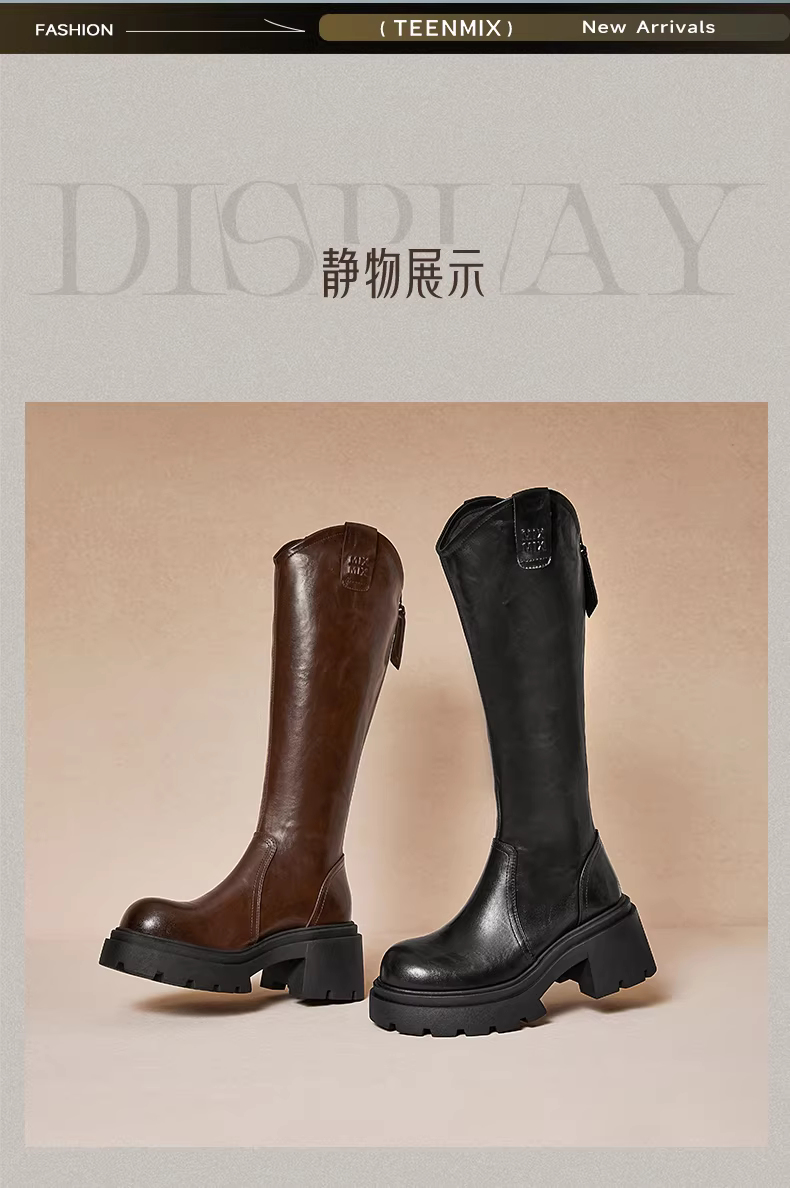 Giày bốt cưỡi ngựa lót lông cừu đế dày kiểu cổ điển Tianmeiyi, bốt dài, giày nữ, bốt thời trang cổ cao, bốt da, mẫu mùa đông mới.