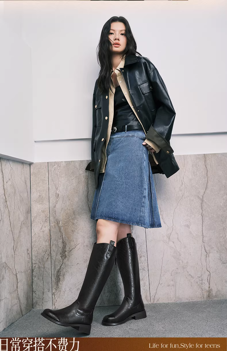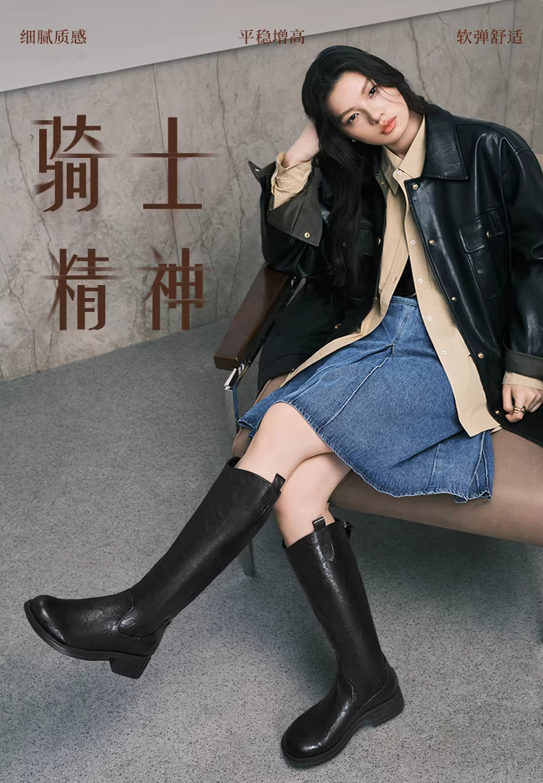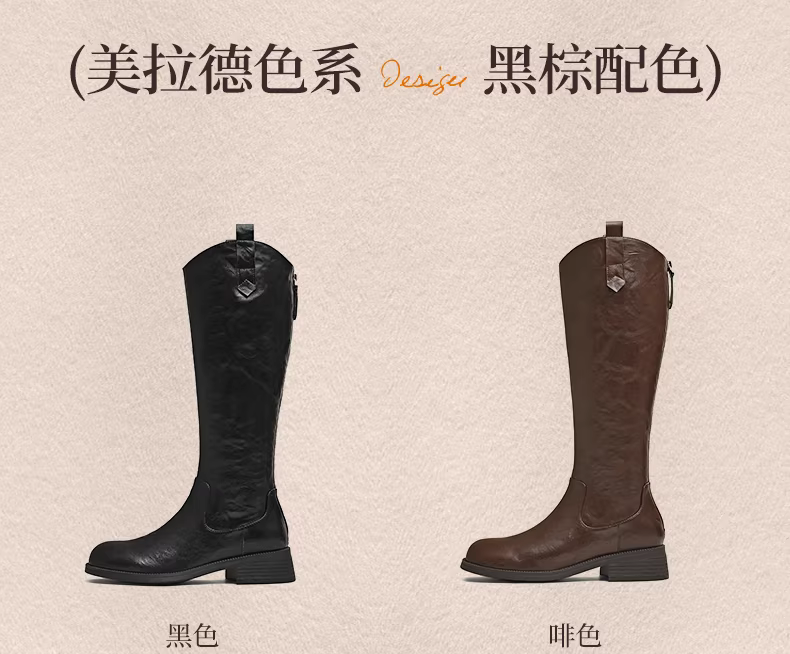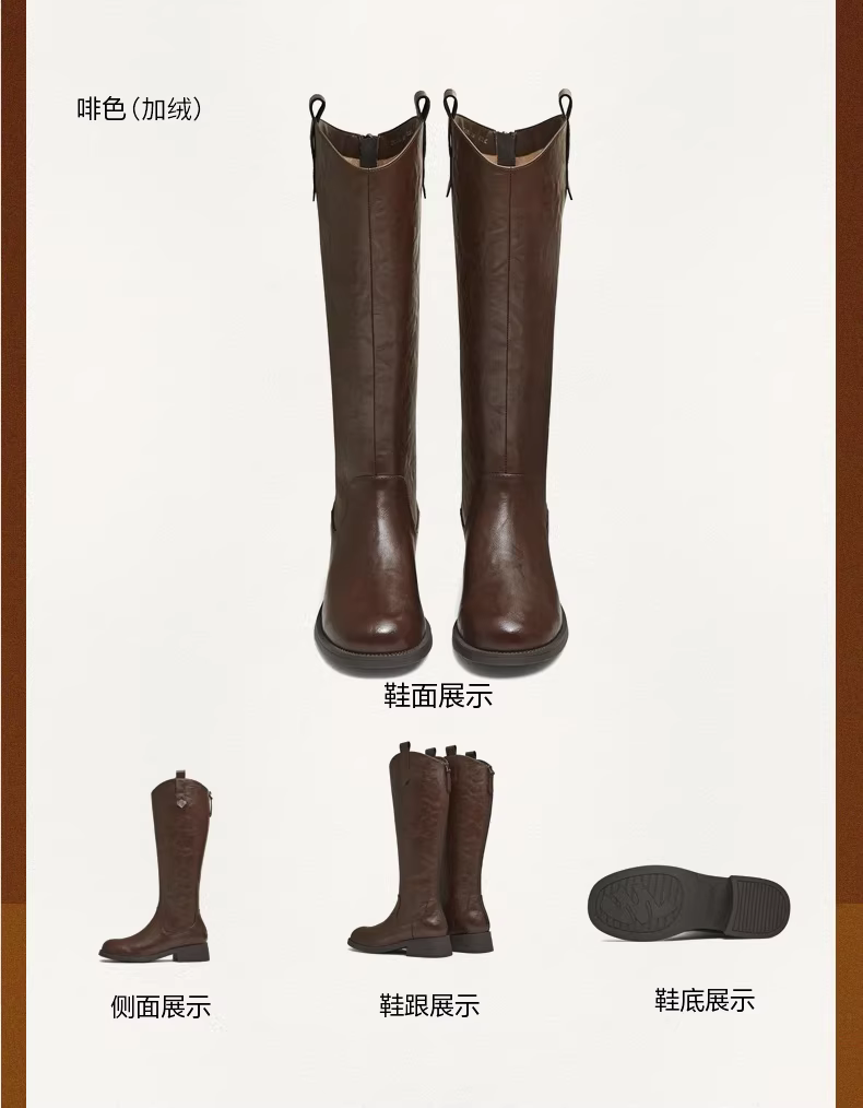 - Giày bốt cưỡi ngựa lót lông cừu kiểu cổ chữ V đế dày cổ điển Tianmeiyi, bốt dài, bốt thời trang ống cao nữ, bốt da, kiểu mới mùa đông 2025.
