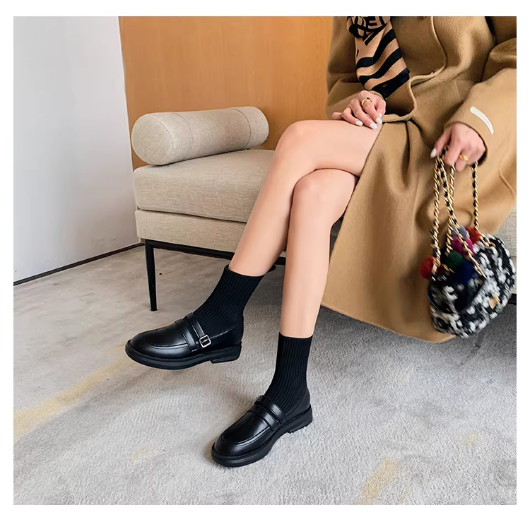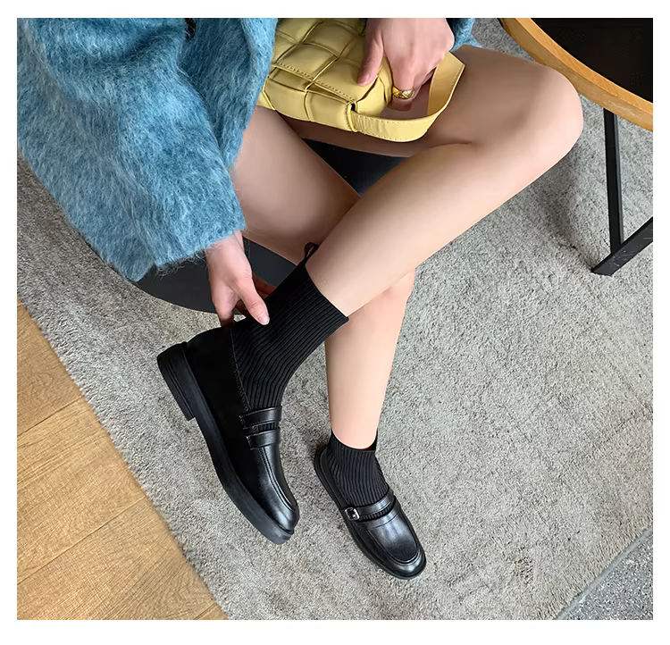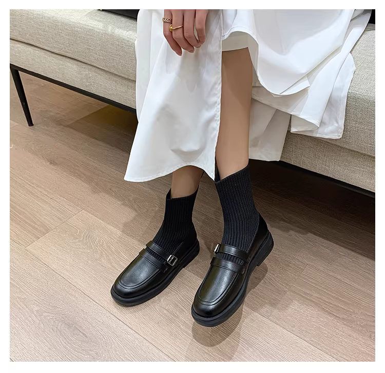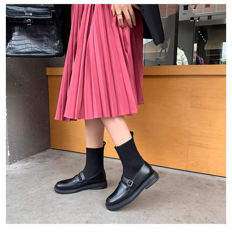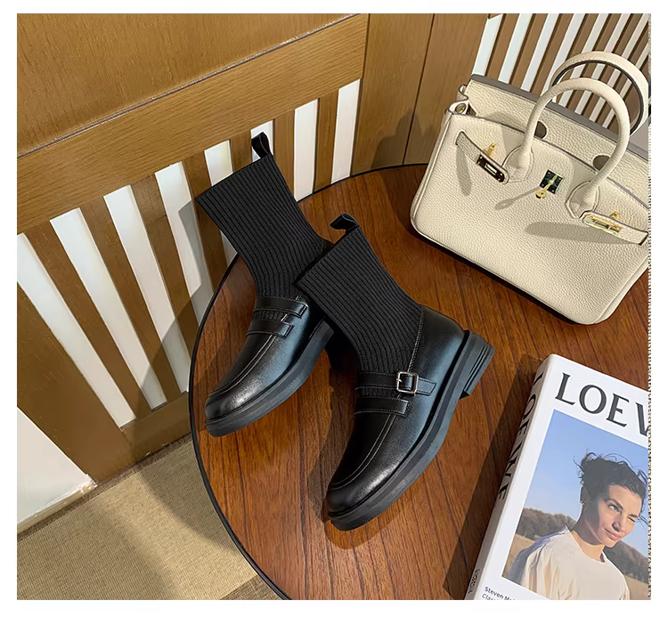 - Giày bốt da thật dáng ôm cho nữ, bốt ngắn, bốt tất co giãn, bốt đế bằng, bốt tất mùa thu 2025, bốt Martin dáng ôm, kiểu dáng thời thượng.