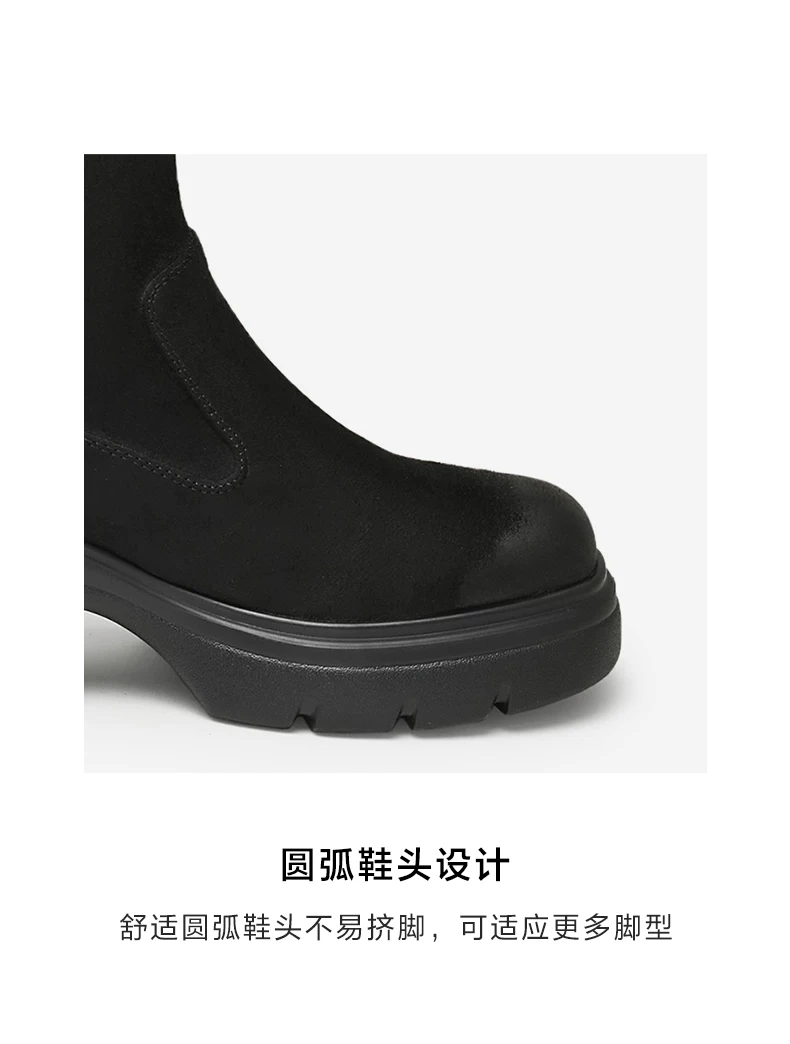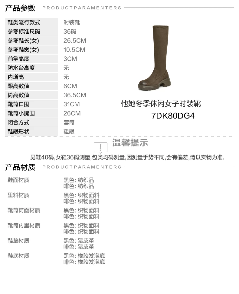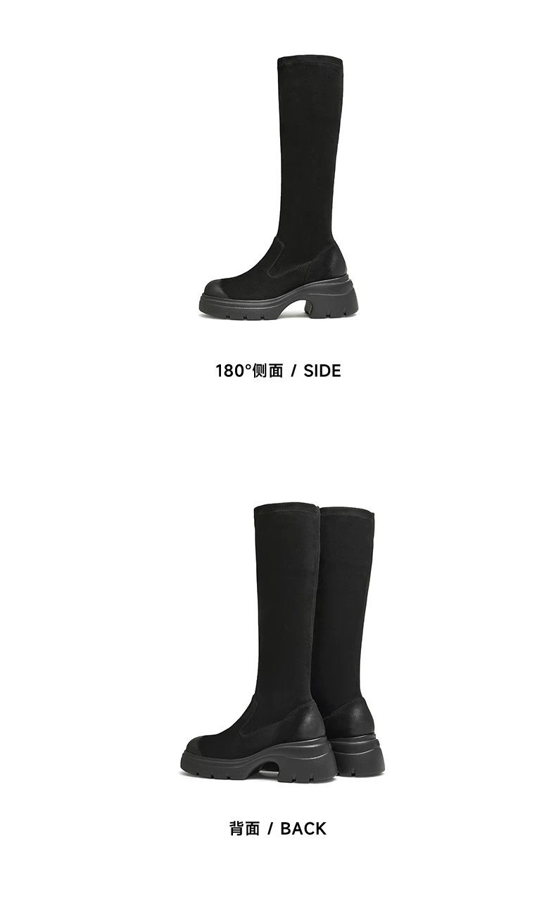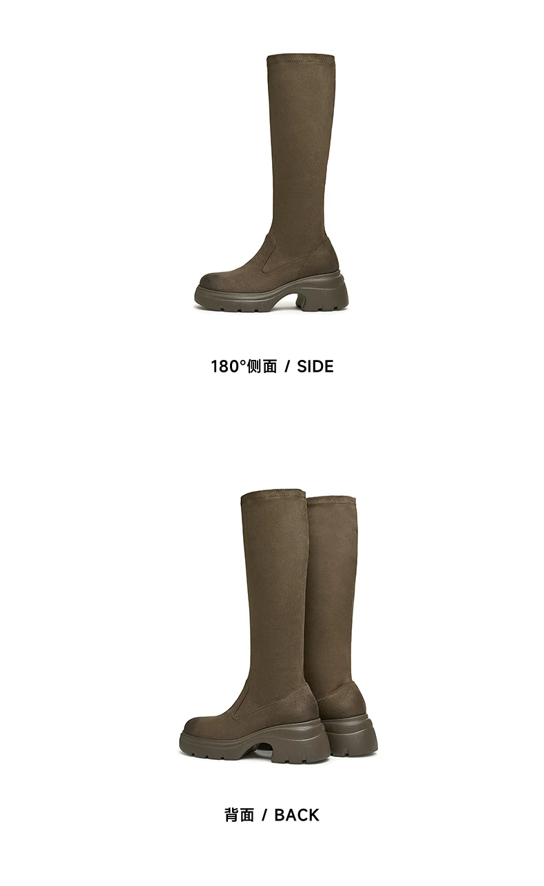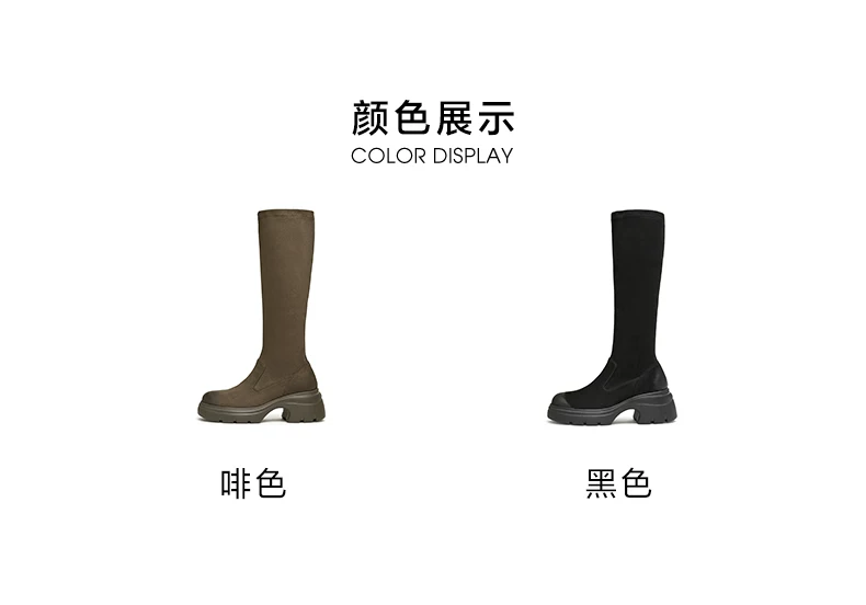 - Giày bốt dài đế dày co giãn Tata Giày bốt nữ thông thường Giày cao cổ giảm béo mùa đông 2024 Mẫu mới 7DK80DG4