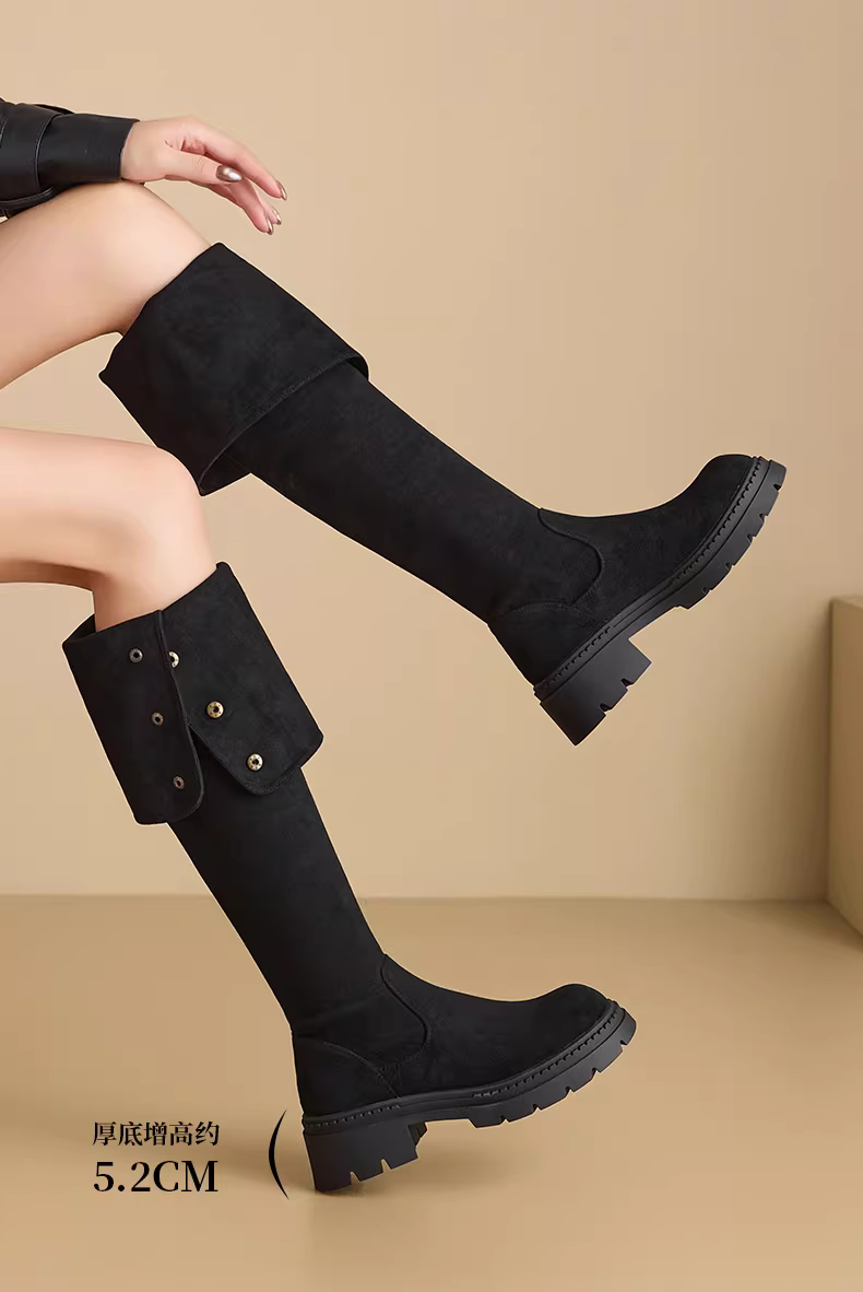 Giày bốt dài hai chiều Dadong dành cho nữ, mẫu mới thu đông 2025, dành cho nữ nhỏ nhắn, đế dày, kiểu cao quá gối, ôm sát, chất liệu thun.