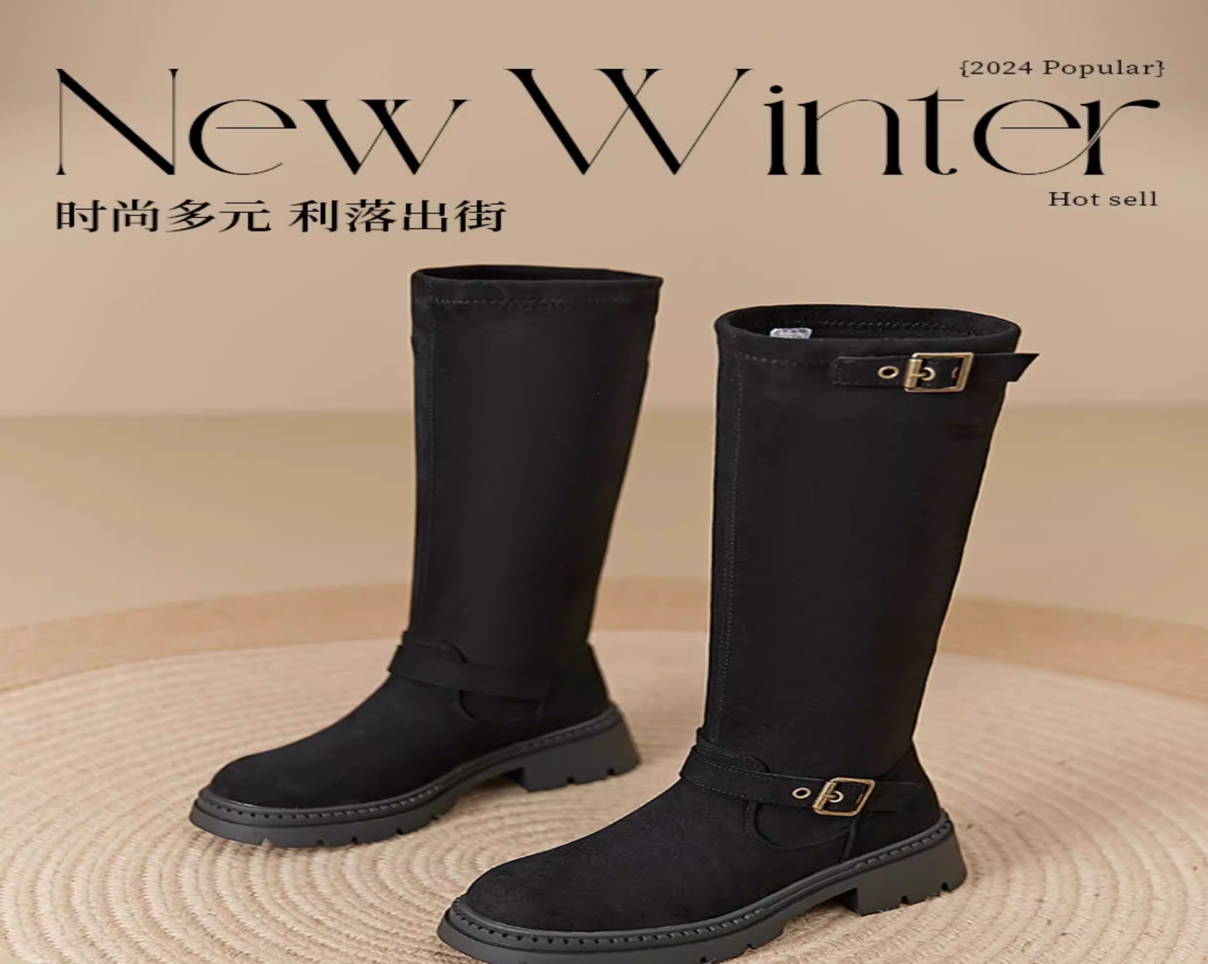 - Giày bốt dài màu đen Dadong dành cho nữ 2025, mẫu mới thu đông, kiểu ôm sát, đế dày, cổ cao, kiểu đi xe.
