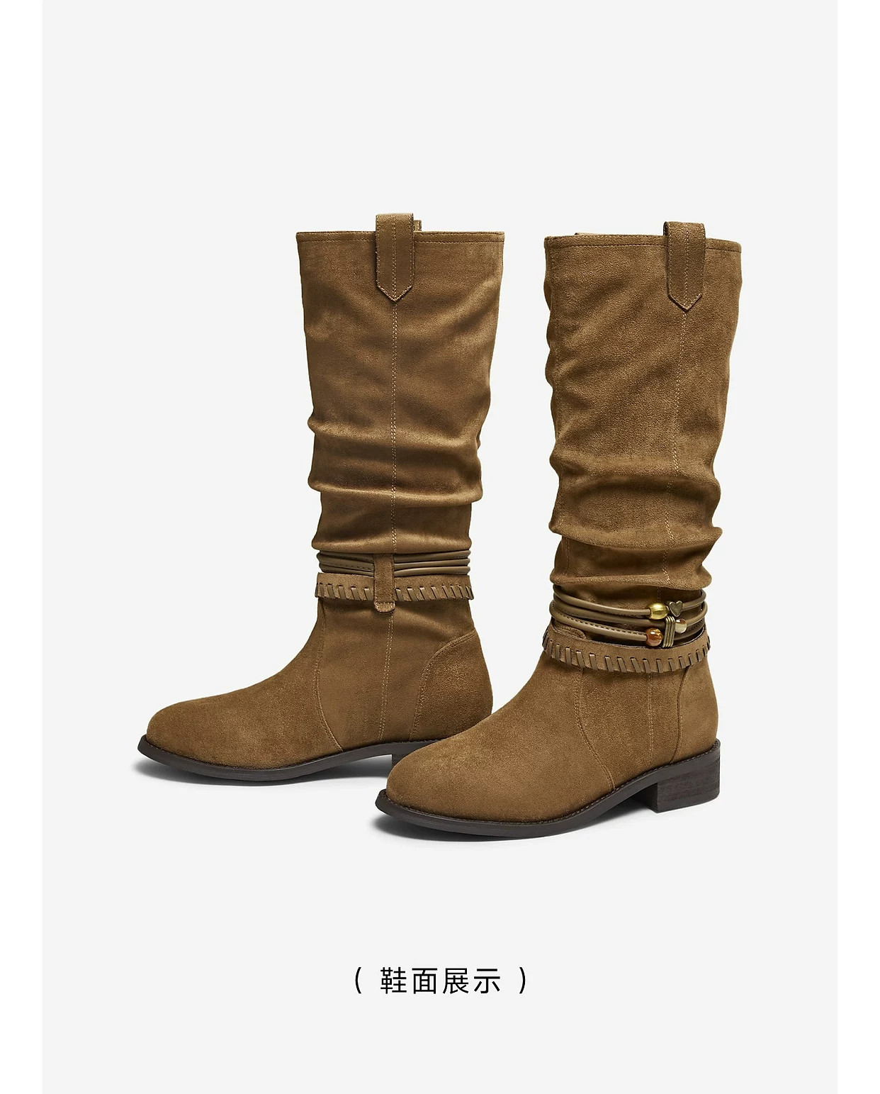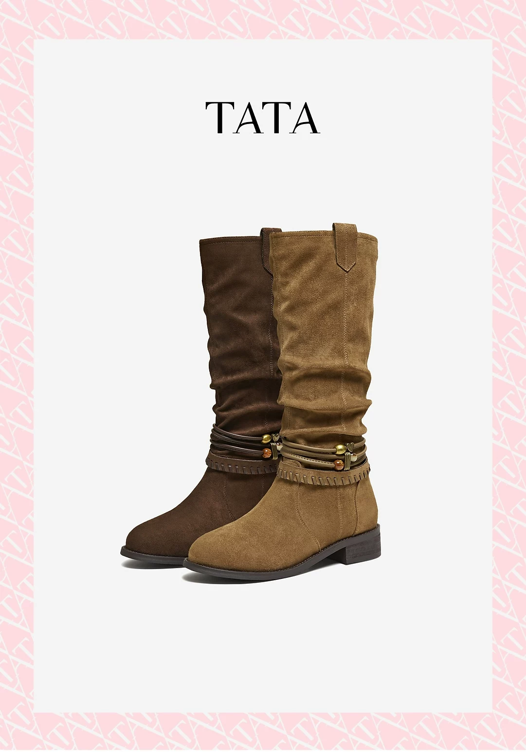 Giày bốt dài nữ TATA 2025 Giày bốt phương Tây mới mùa đông Giày bốt thời trang đa năng Giày bốt đi ngoài trời CKU01DG5