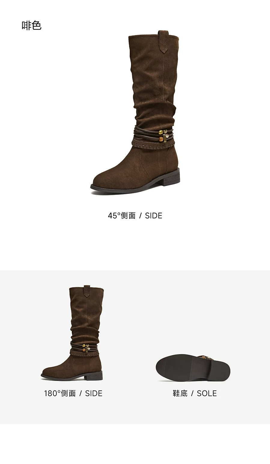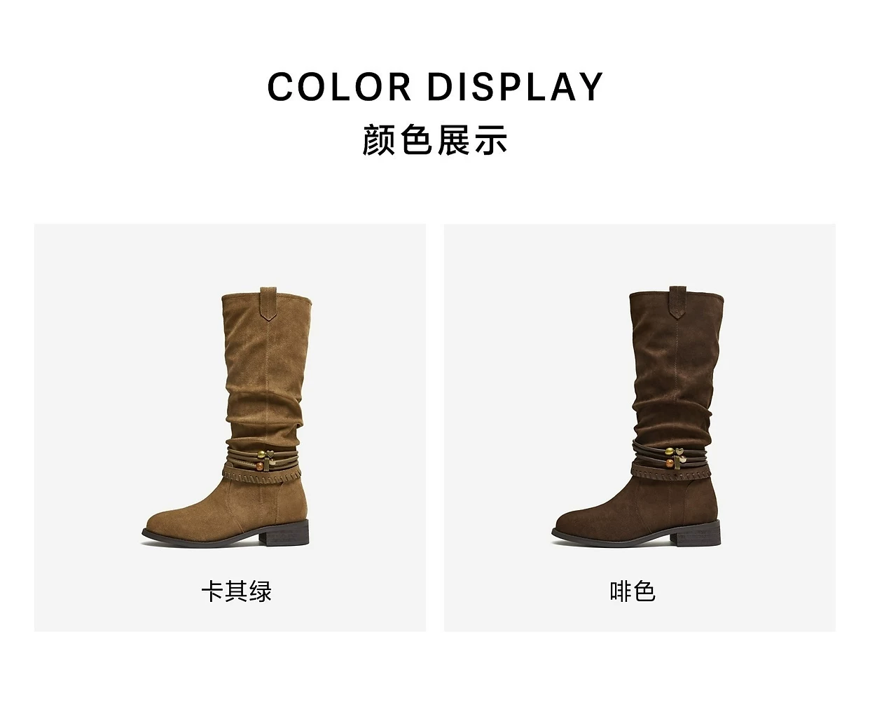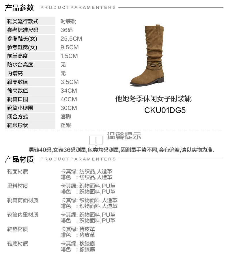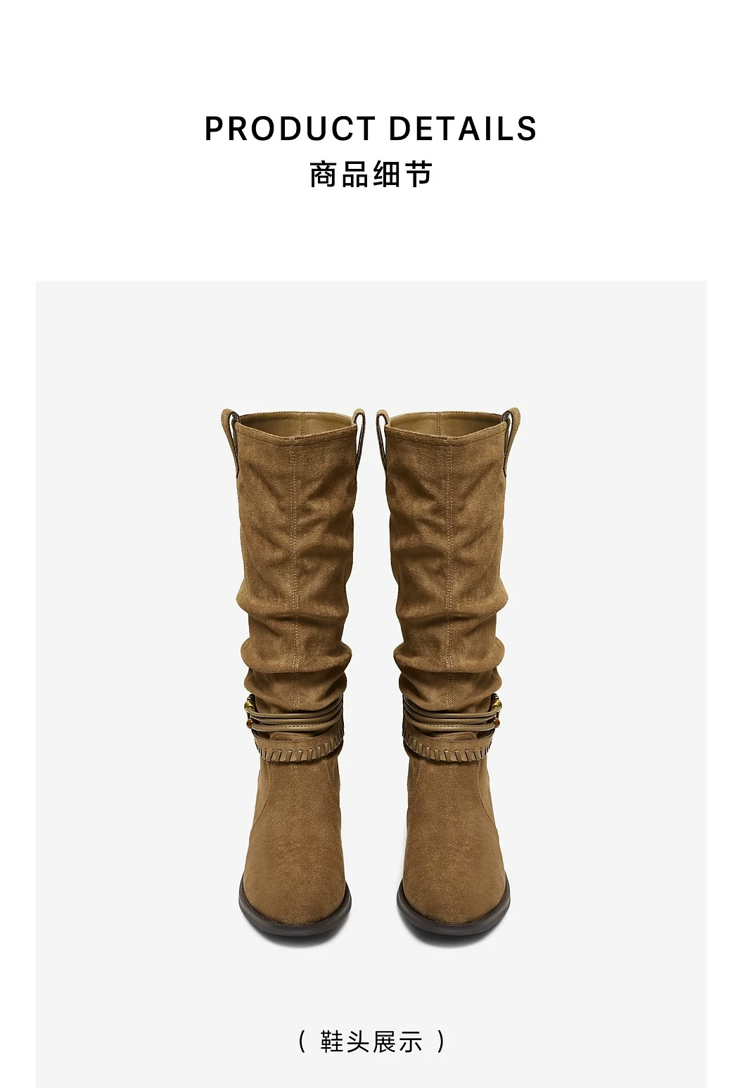 - Giày bốt dài nữ TATA 2025 Giày bốt phương Tây mới mùa đông Giày bốt thời trang đa năng Giày bốt đi ngoài trời CKU01DG5