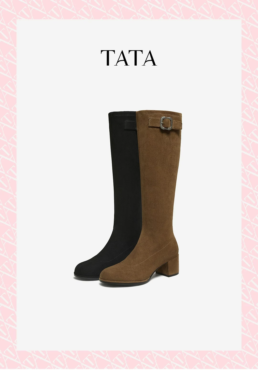 - Giày bốt dài nữ TATA 2025 Giày bốt thời trang mùa đông Giày bốt dài cổ điển giảm béo Giày bốt cưỡi ngựa co giãn 7JX80DG5