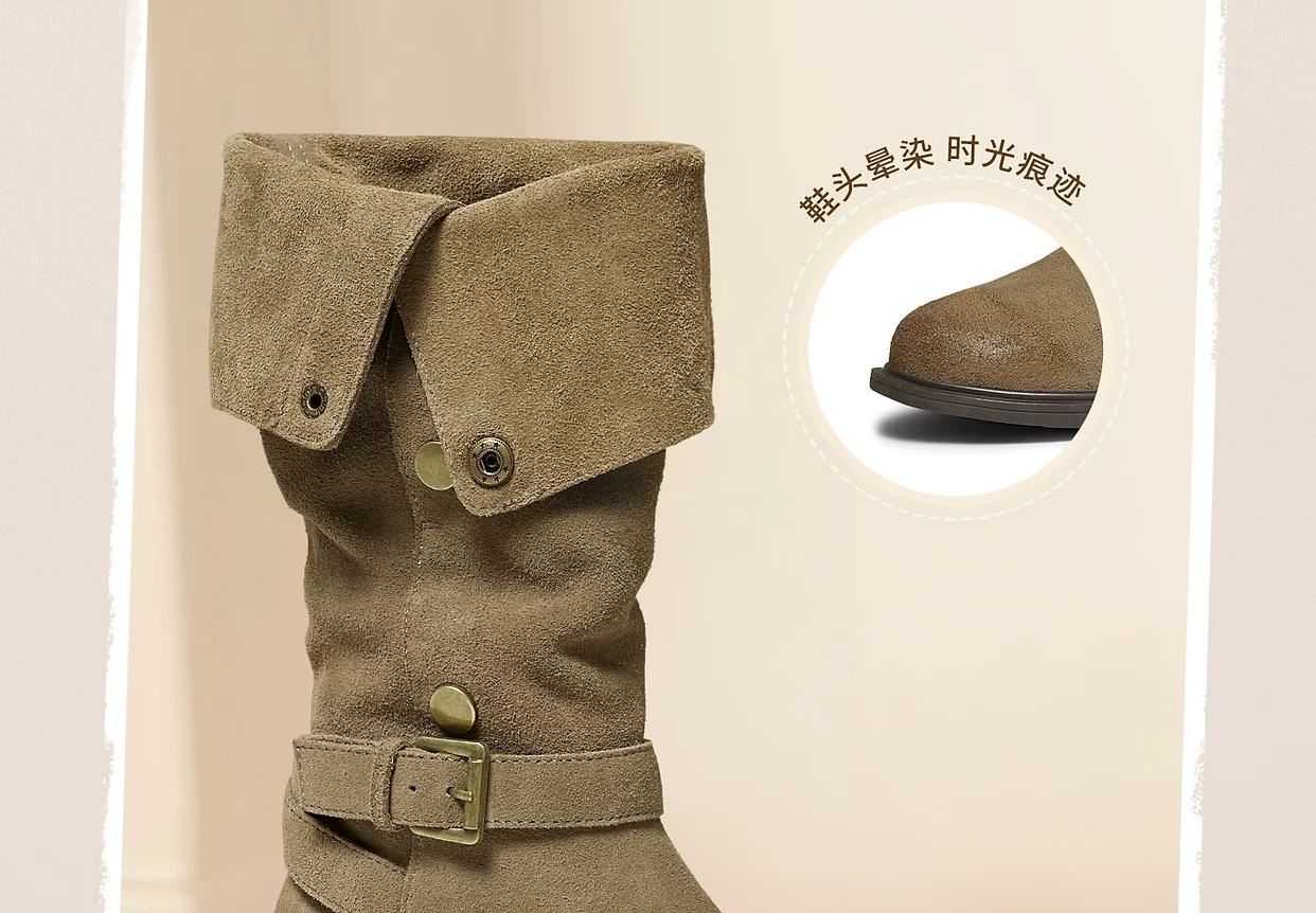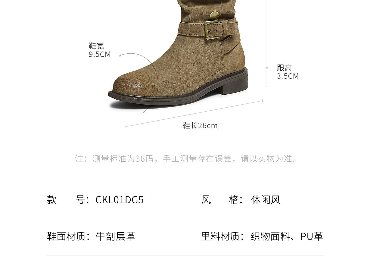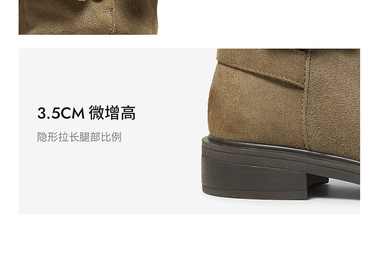 - Giày bốt dài TATA 2025 Giày bốt màu nâu lót lông cừu Giày bốt cao cổ Giày bốt thời trang phương Tây CKL01DG5