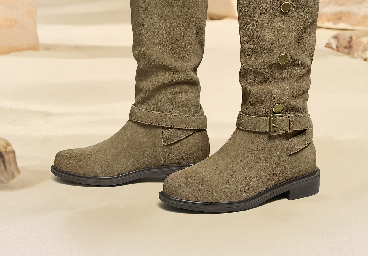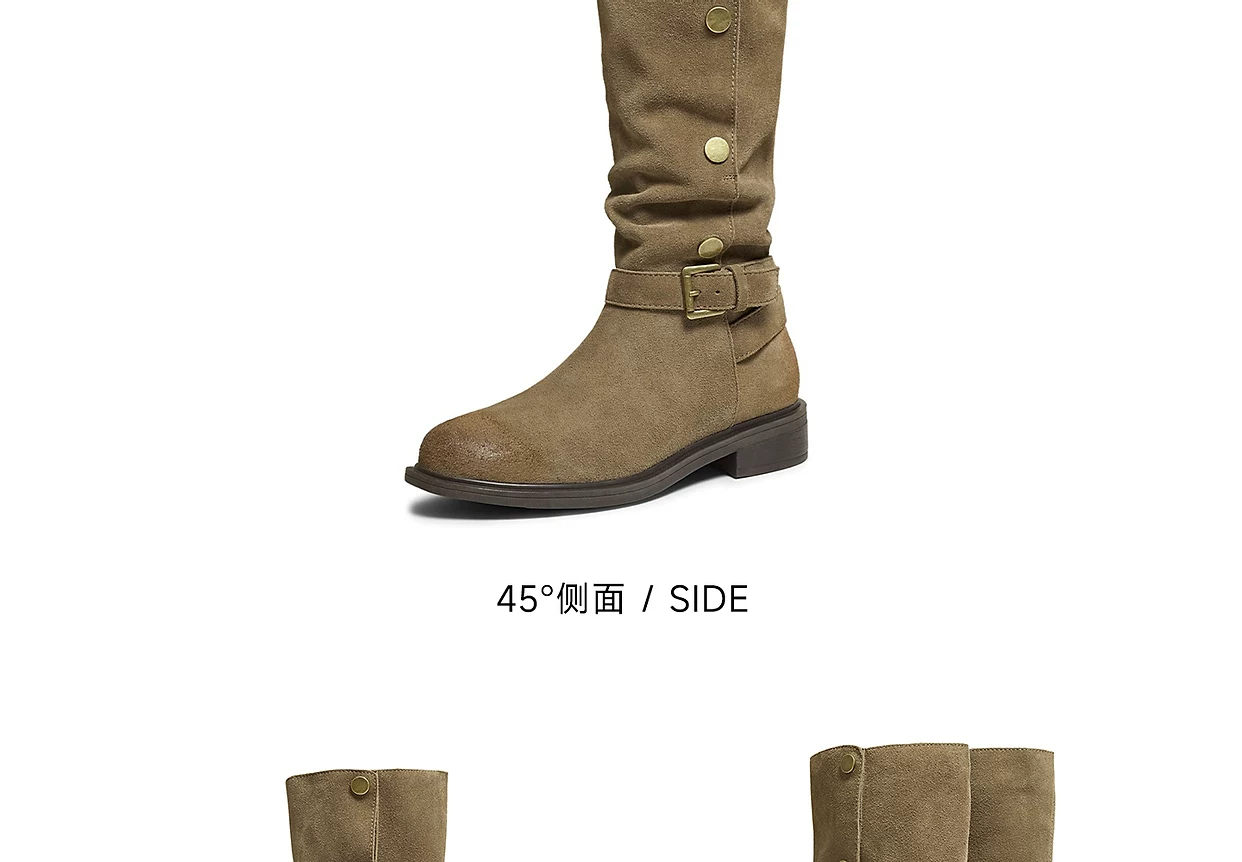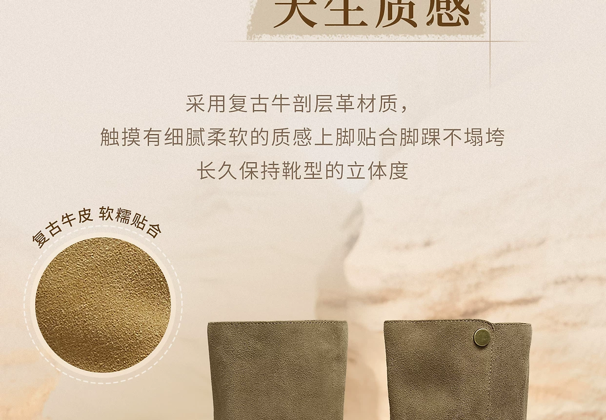 - Giày bốt dài TATA 2025 Giày bốt màu nâu lót lông cừu Giày bốt cao cổ Giày bốt thời trang phương Tây CKL01DG5