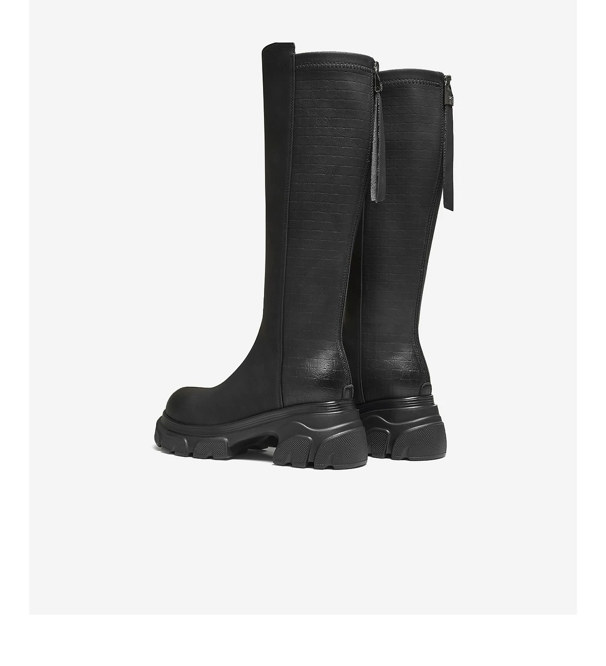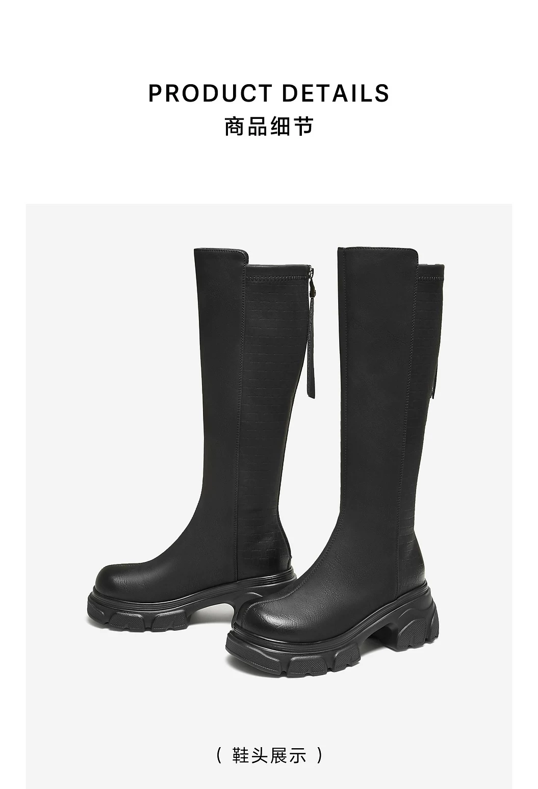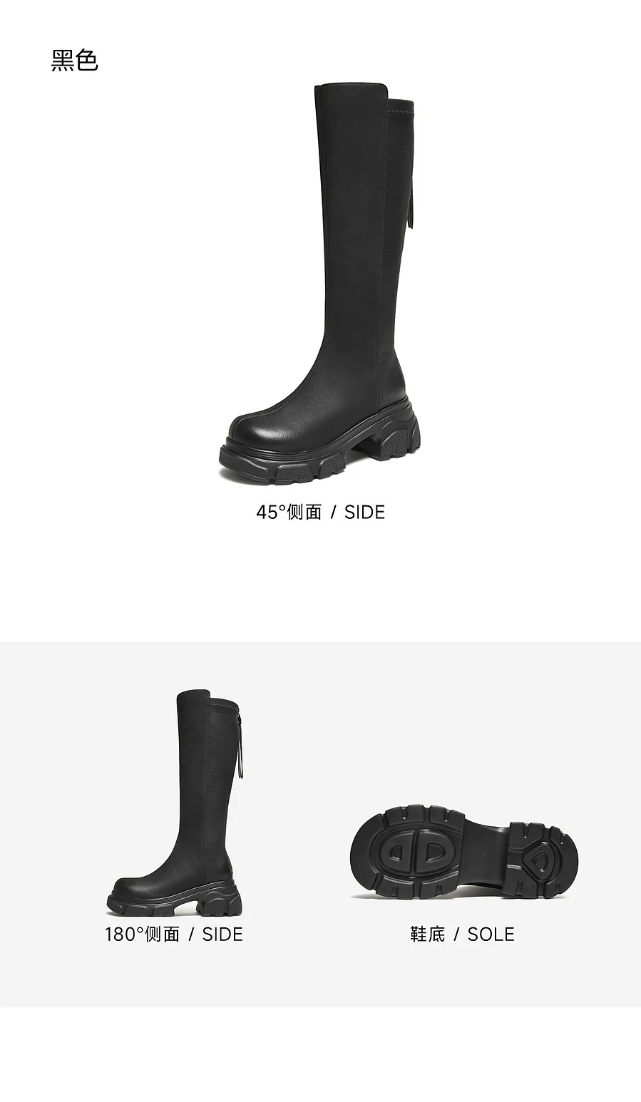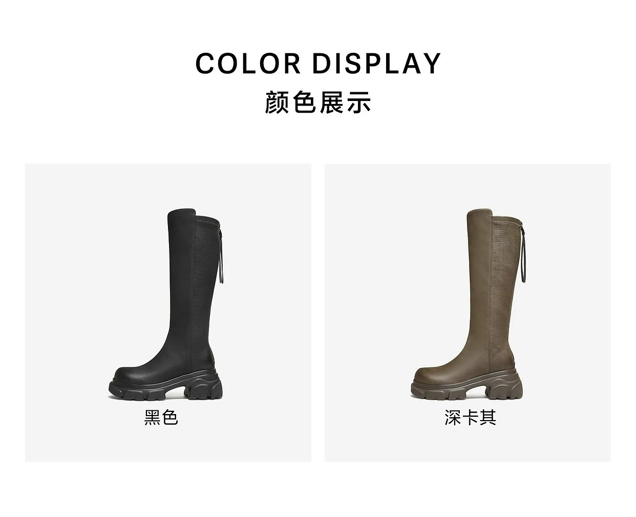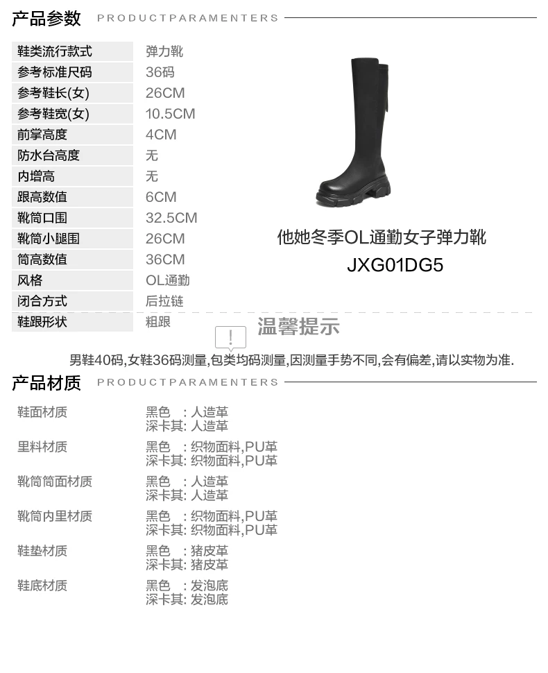 - Giày bốt dài TATA 2025 Giày bốt thời trang mới mùa đông Giày bốt nữ thông thường Giày bốt co giãn tăng chiều cao đa năng JXG01DG5