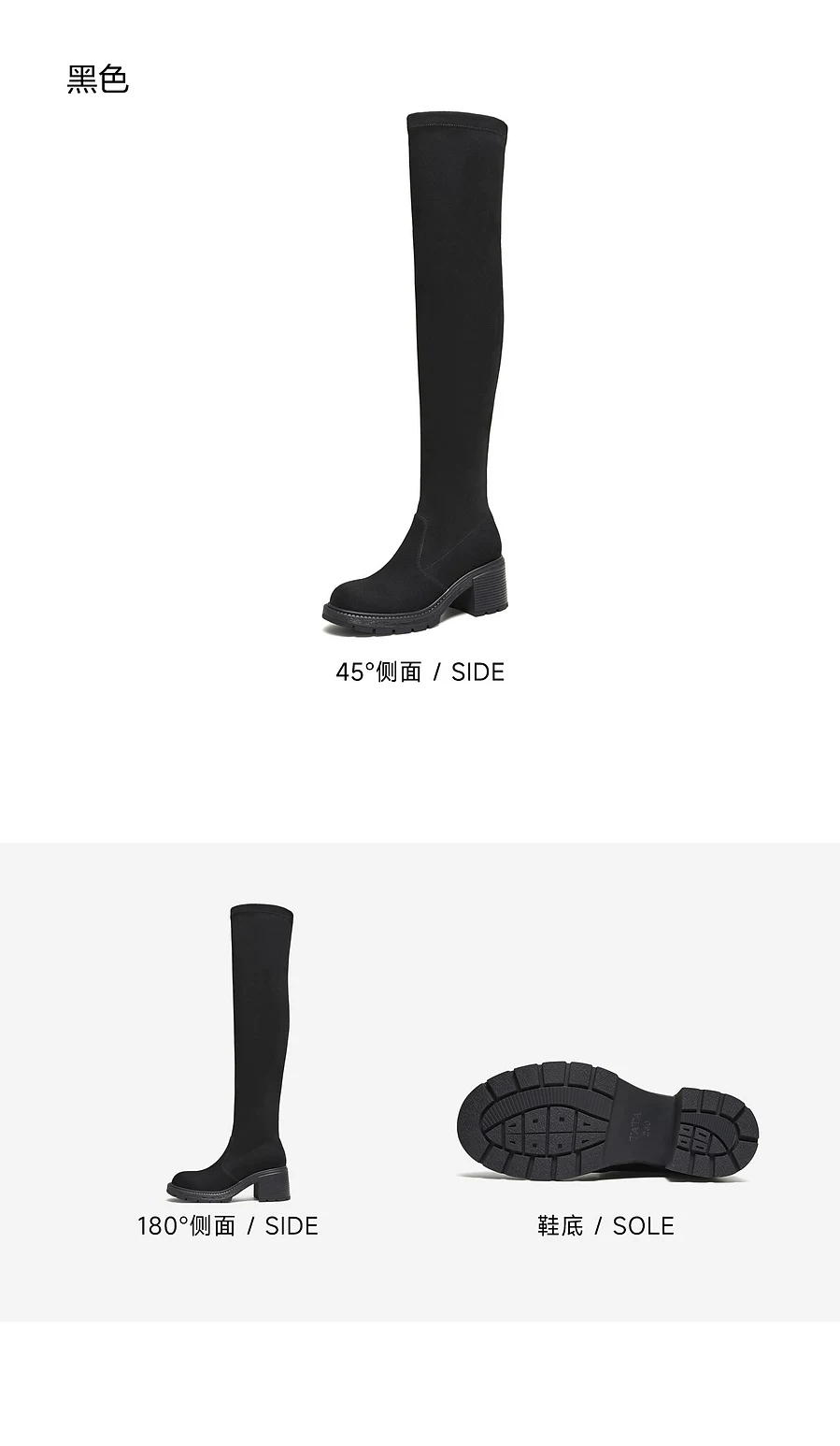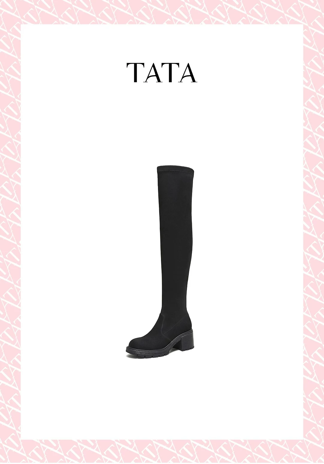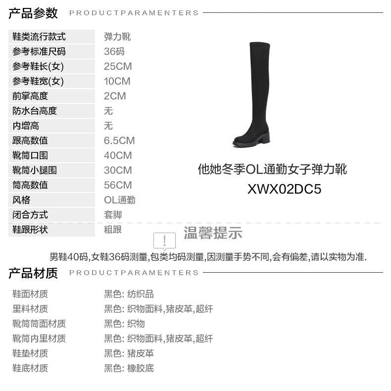 - Giày bốt dài TATA 2025 Mùa đông mới Giày bốt nữ thông thường Giày bốt co giãn đa năng Giày bốt thời trang màu đen XWX02DC5