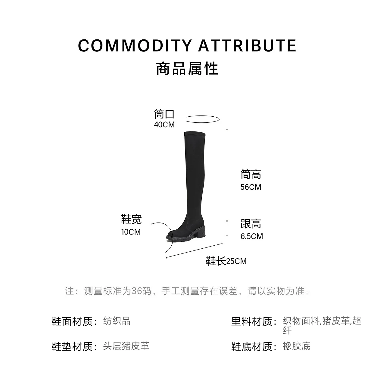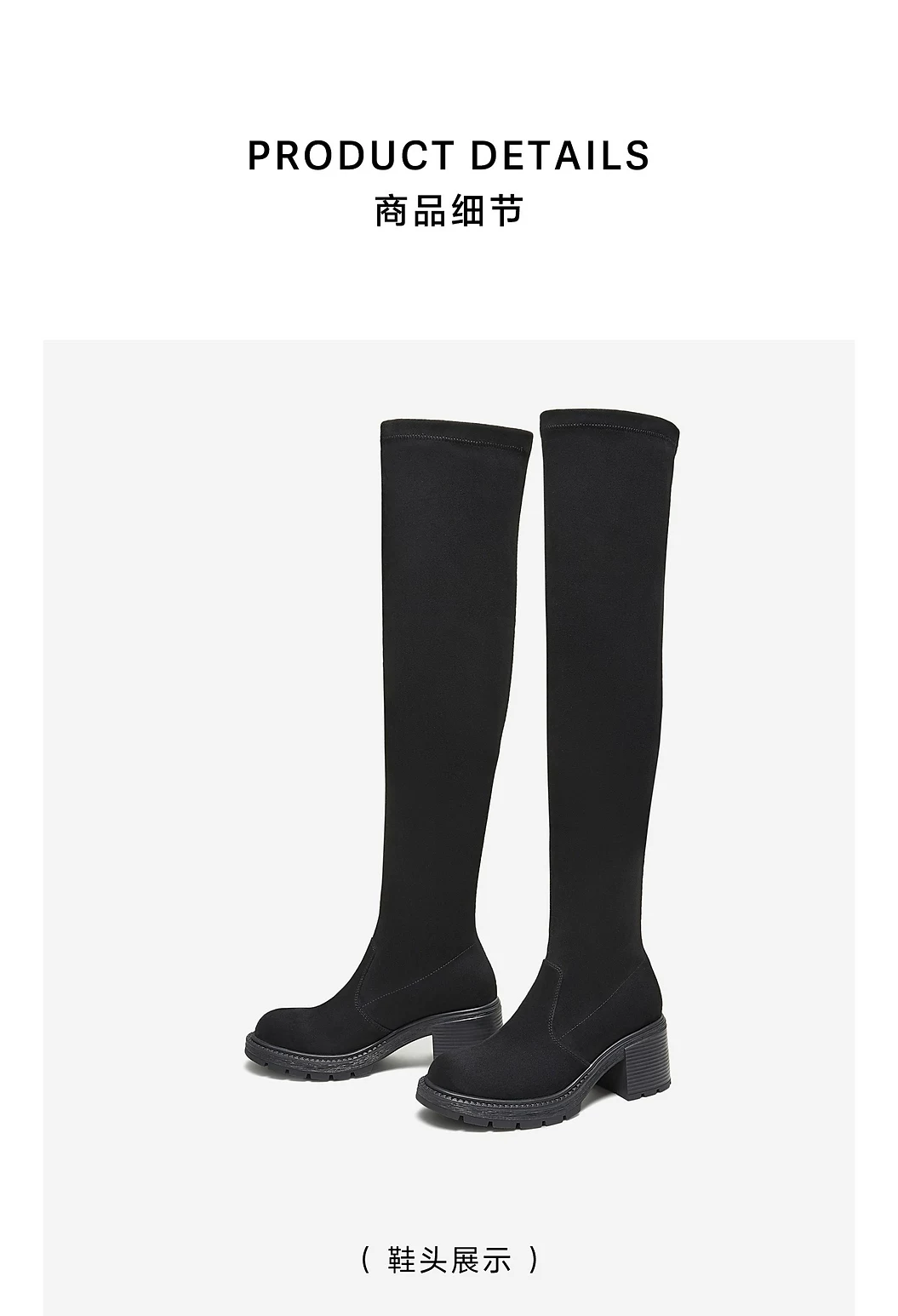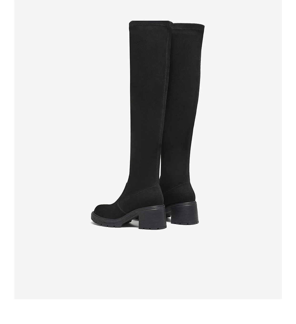 - Giày bốt dài TATA 2025 Mùa đông mới Giày bốt nữ thông thường Giày bốt co giãn đa năng Giày bốt thời trang màu đen XWX02DC5