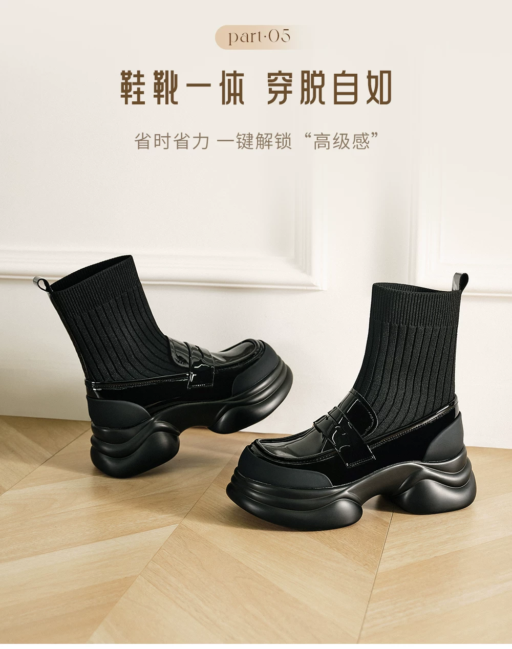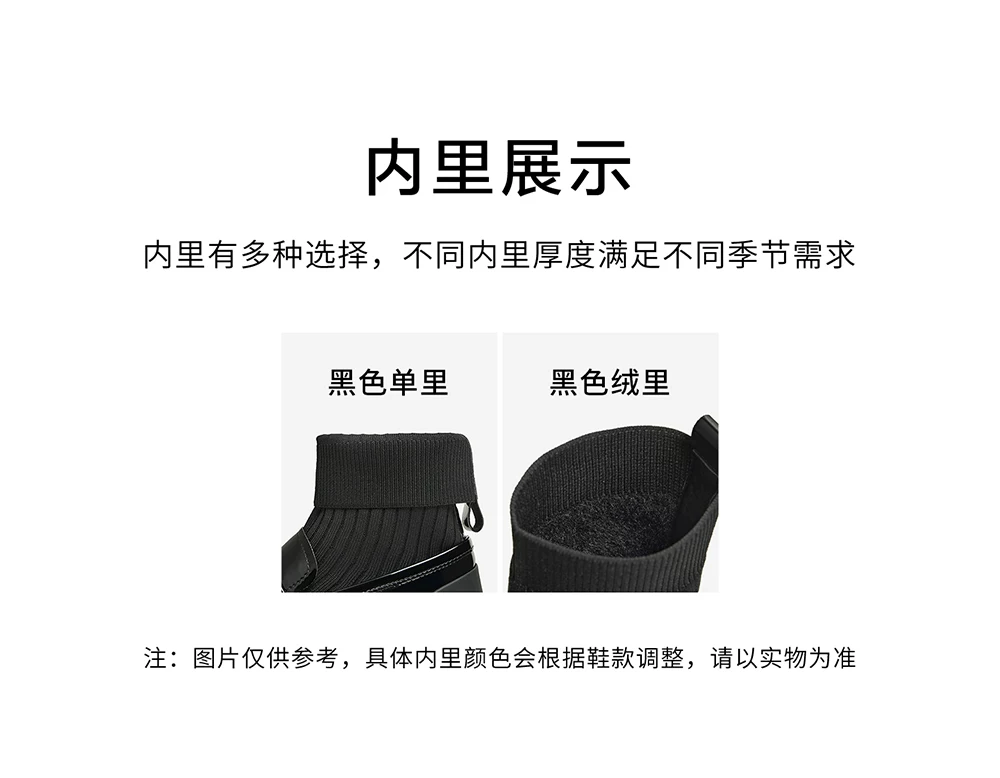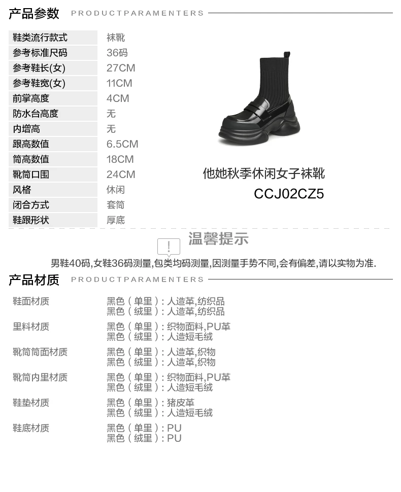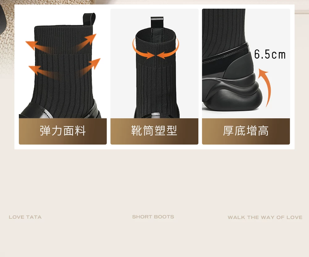 - Giày bốt đế dày của Anh TATA Giày nữ Giày bốt tất co giãn mỏng có lót lông cừu Giày bốt ngắn CCJ02CZ5