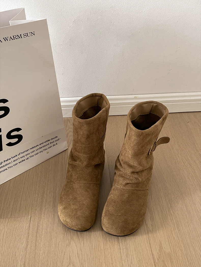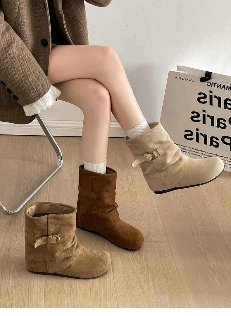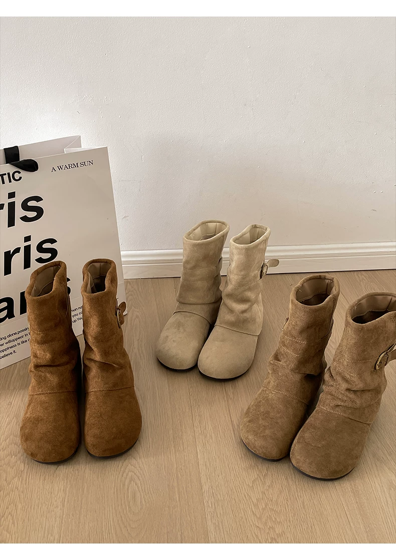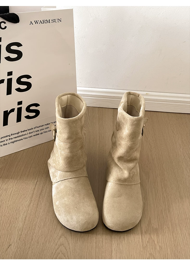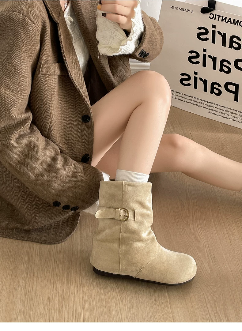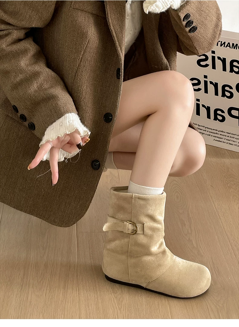 - Giày bốt đế dày đa năng kiểu retro dành cho nữ, phong cách thu đông 2025 mới, phối cùng váy để trông thon gọn và cao hơn, kiểu bốt ngắn phong cách Birkenstock.