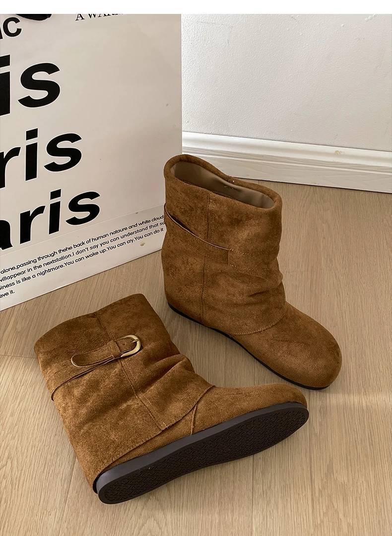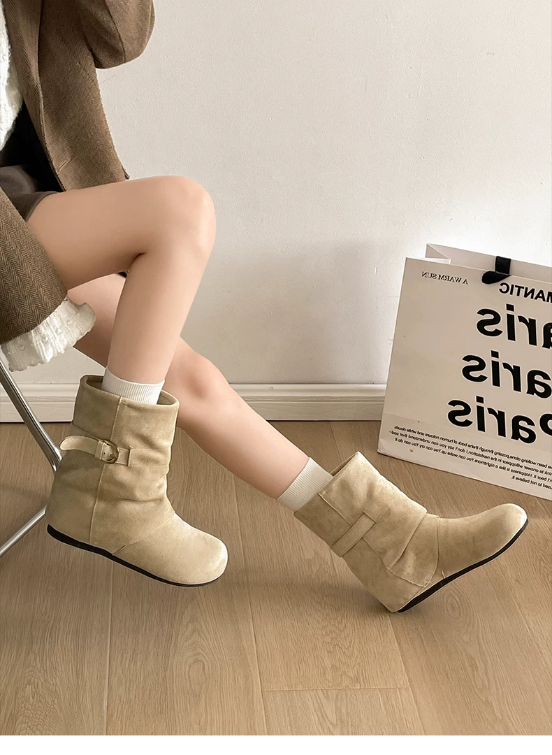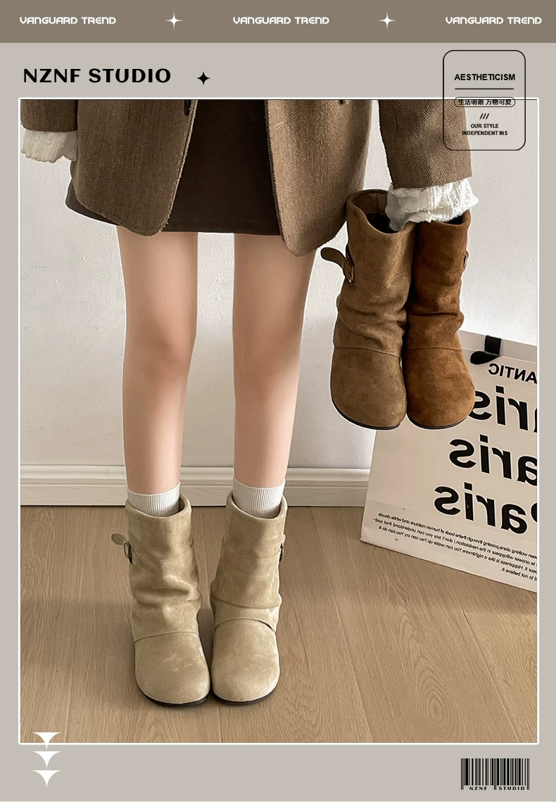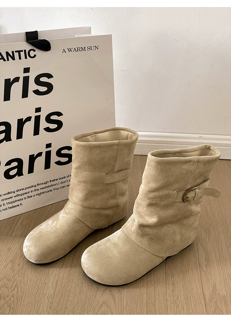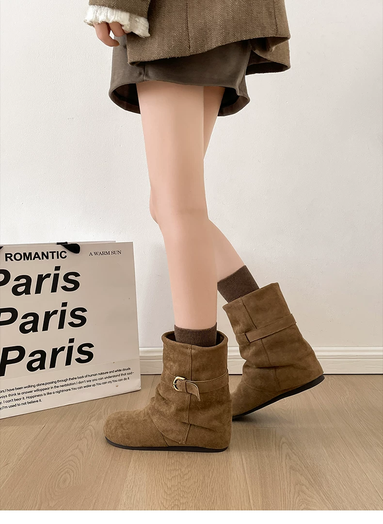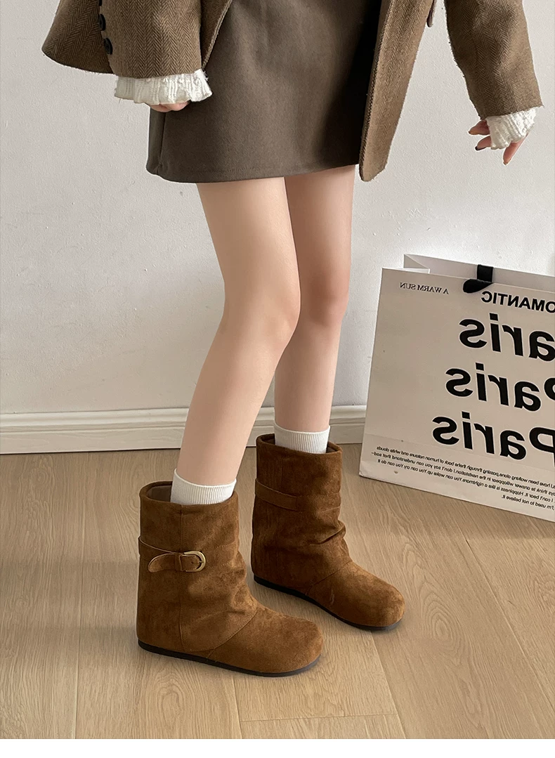 - Giày bốt đế dày đa năng kiểu retro dành cho nữ, phong cách thu đông 2025 mới, phối cùng váy để trông thon gọn và cao hơn, kiểu bốt ngắn phong cách Birkenstock.