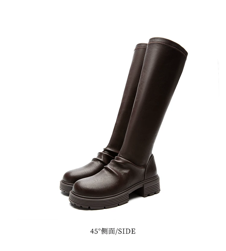 Giày bốt đế dày Dadong dành cho nữ 2025, mẫu mới thu đông, lót lông cừu, kiểu dáng ôm sát, xếp ly, cổ cao, kiểu đi xe.