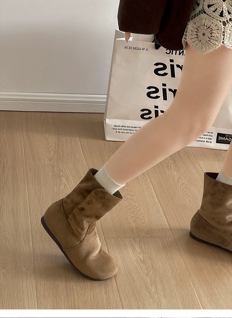 - Giày bốt đế dày màu kaki Meilade dành cho nữ, kiểu dáng thu đông 2025 mới, phối cùng chân váy giúp trông thon gọn hơn, kiểu retro Birkenstock.