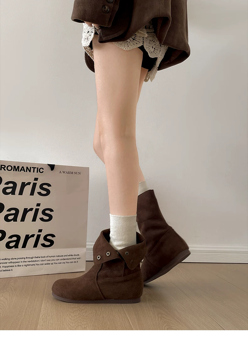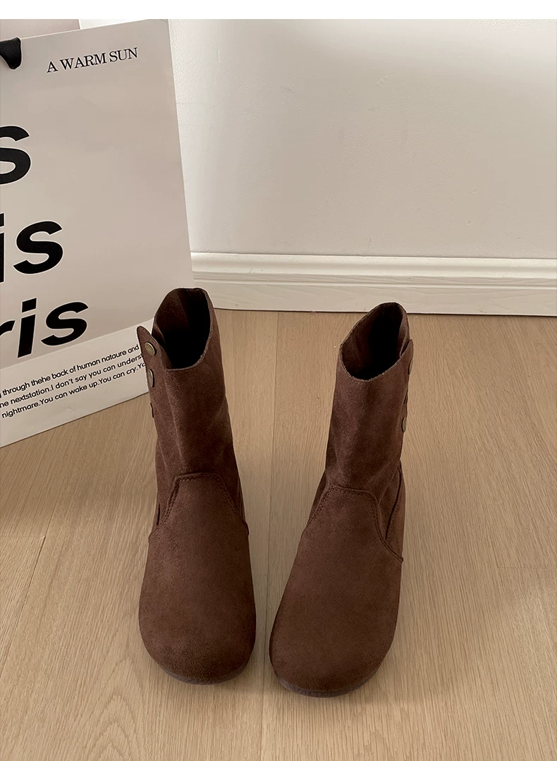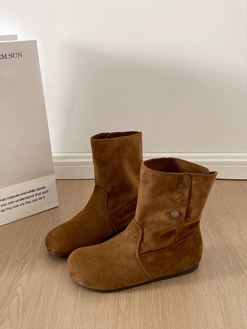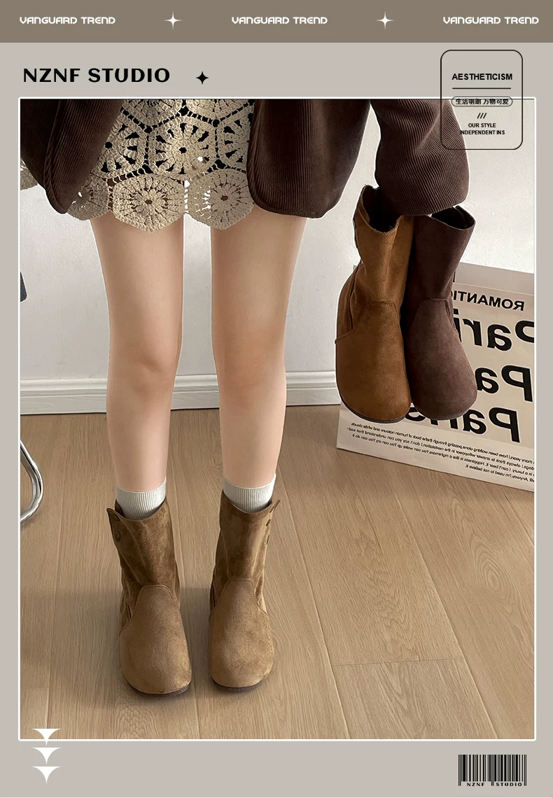 Giày bốt đế dày màu kaki Meilade dành cho nữ, kiểu dáng thu đông 2025 mới, phối cùng chân váy giúp trông thon gọn hơn, kiểu retro Birkenstock.