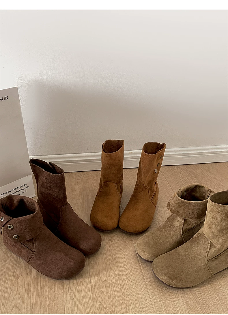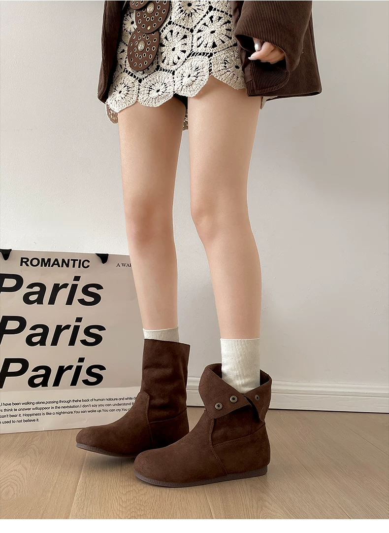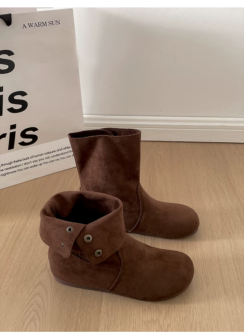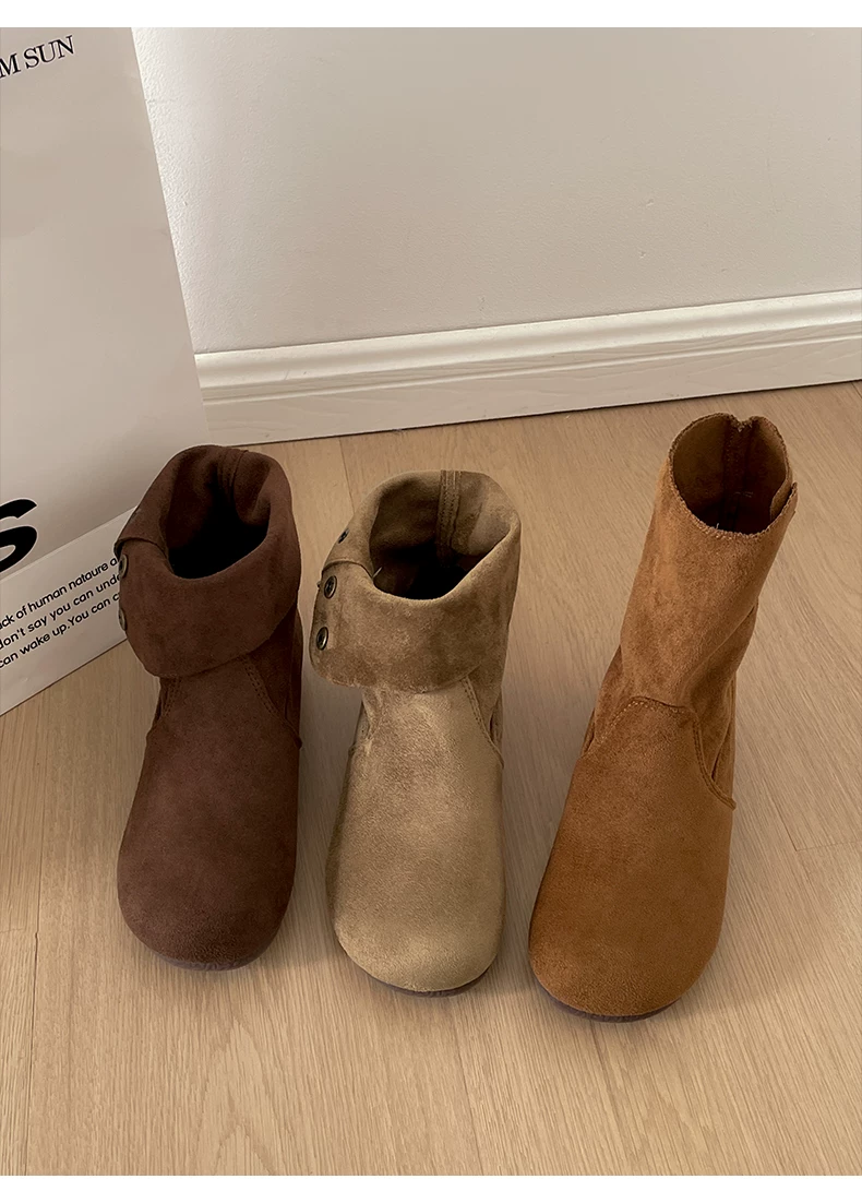 Giày bốt đế dày màu kaki Meilade dành cho nữ, kiểu dáng thu đông 2025 mới, phối cùng chân váy giúp trông thon gọn hơn, kiểu retro Birkenstock.