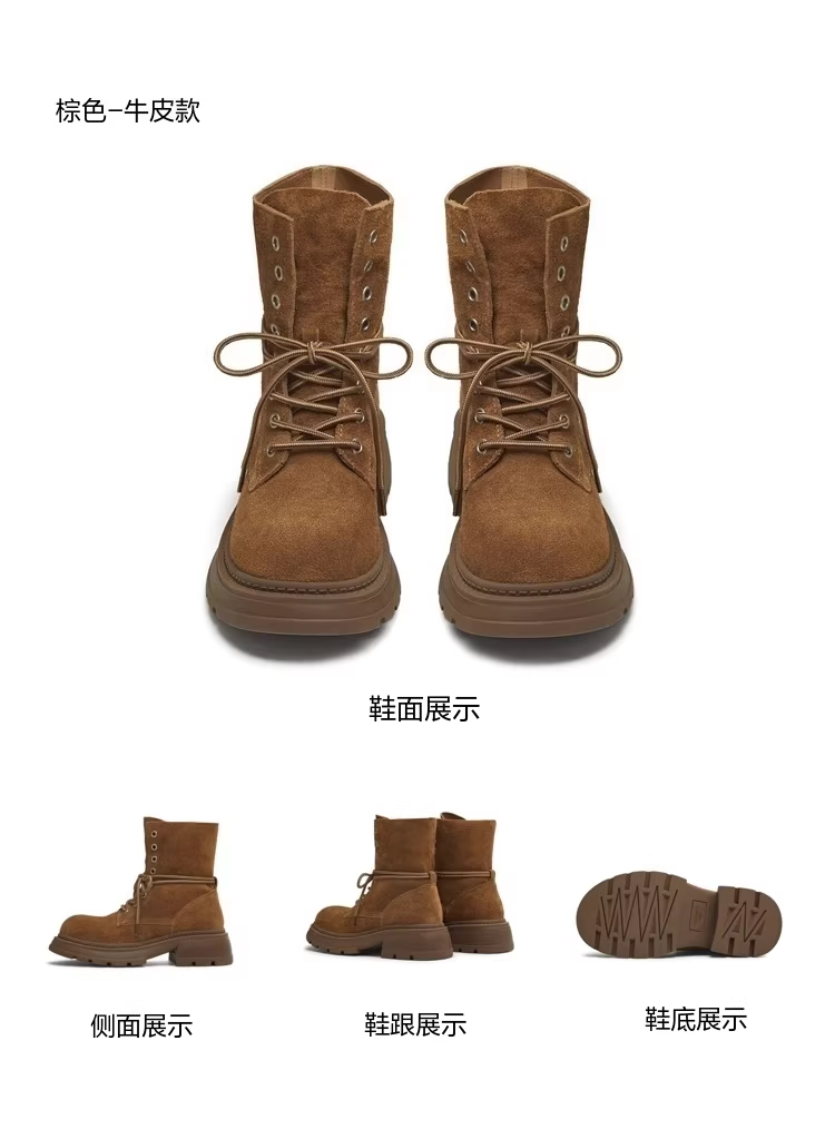 - Giày bốt đi làm ngoài trời đế dày tăng chiều cao Tianmeiyi, kiểu Martin, nữ, cổ ngắn, retro, mẫu mới mùa đông 2025, mã BM171DD5