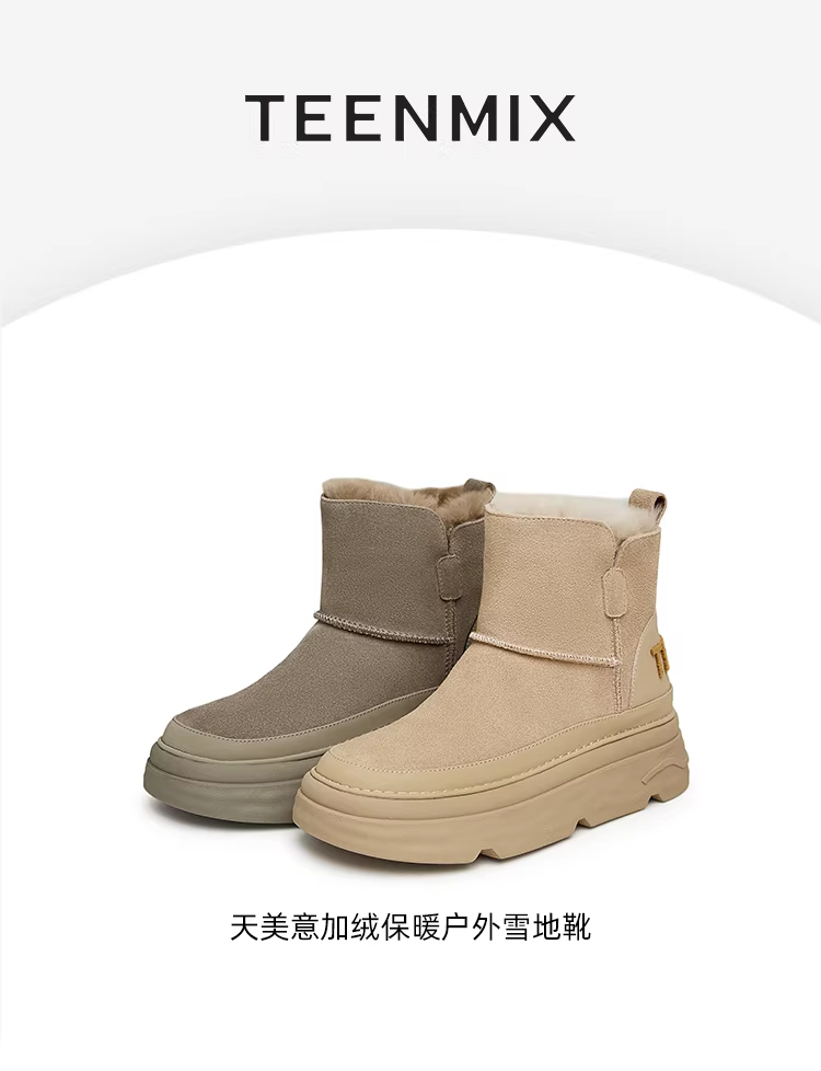 - Giày bốt đi làm ngoài trời Tianmeiyi có lớp lót lông cừu, giày cotton ấm áp cho nữ, bốt ngắn đế dày, mẫu mùa đông mới CMS40DD3