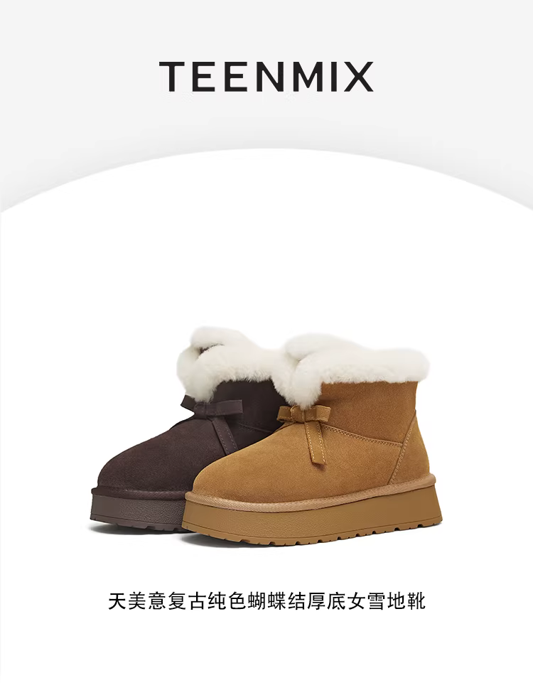Giày bốt đi tuyết ấm áp có lót lông cừu Tianmeiyi giày bốt đế dày đế dày dành cho nữ 2025 mùa đông mẫu mới KXD61DD5