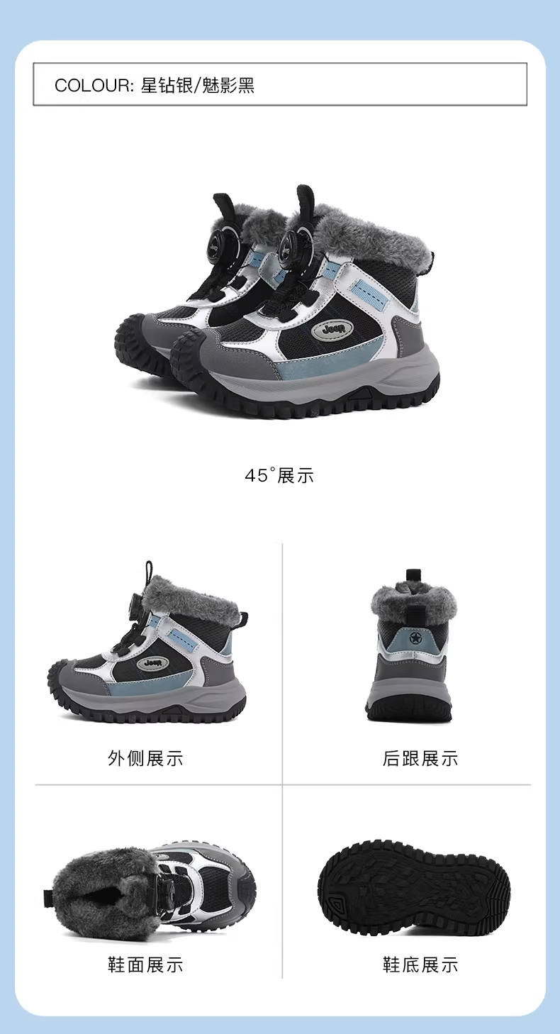 - Giày bốt đi tuyết cho bé trai Jeep Giày cotton cỡ lớn dành cho trẻ em mùa đông 2025 mẫu mới dành cho trẻ lớn hơn Giày bốt cotton đi tuyết có lớp lót lông cừu và giày bốt cotton dày