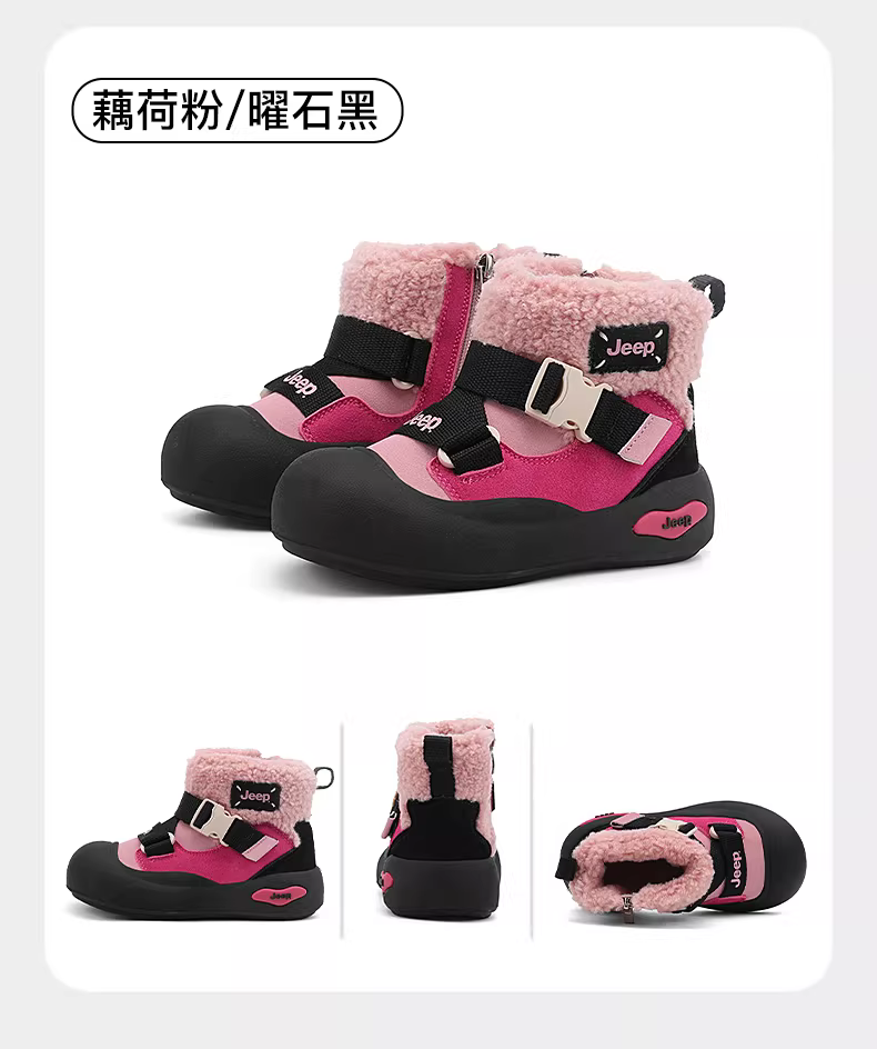 Giày bốt đi tuyết cho bé trai Jeep, giày trẻ em tích hợp da và lông thú, giày cotton lót lông cừu chống thấm nước mùa đông mới 2025, giày cotton cỡ lớn cho trẻ em.