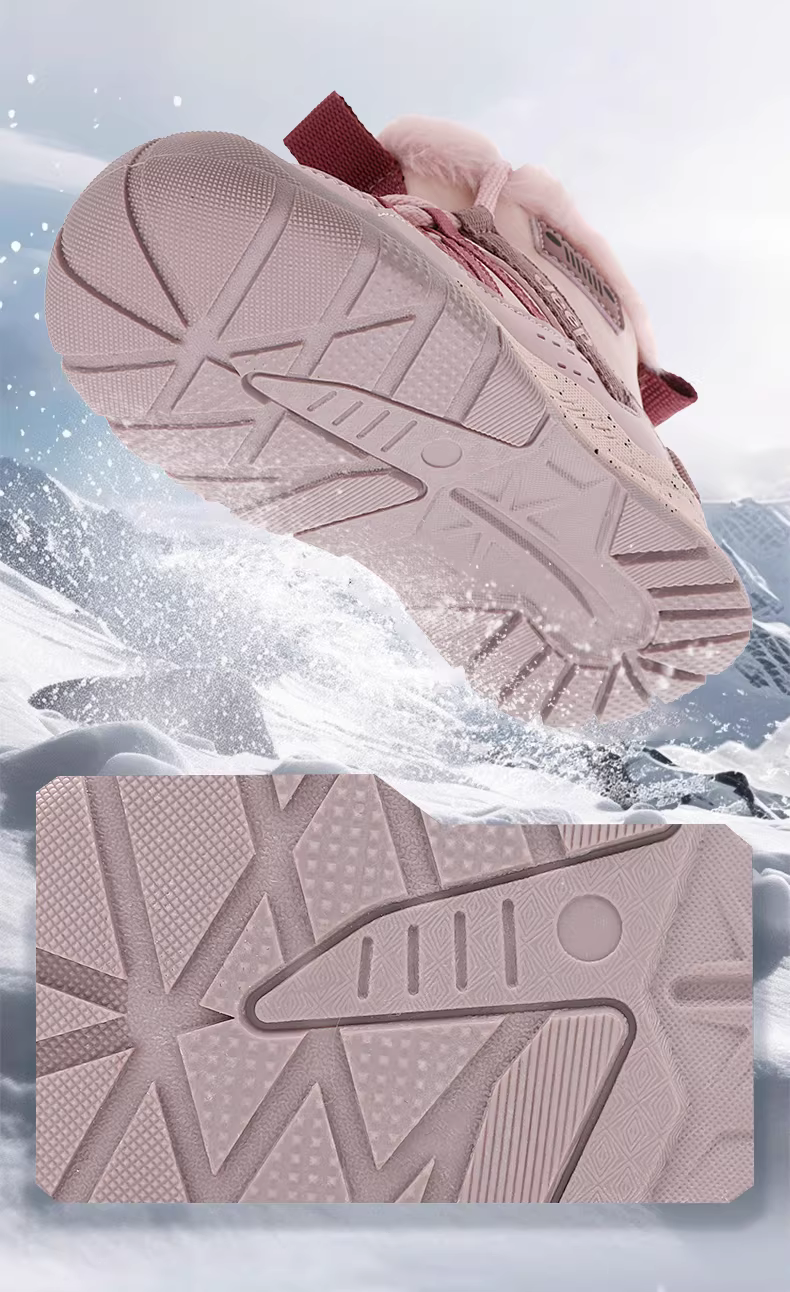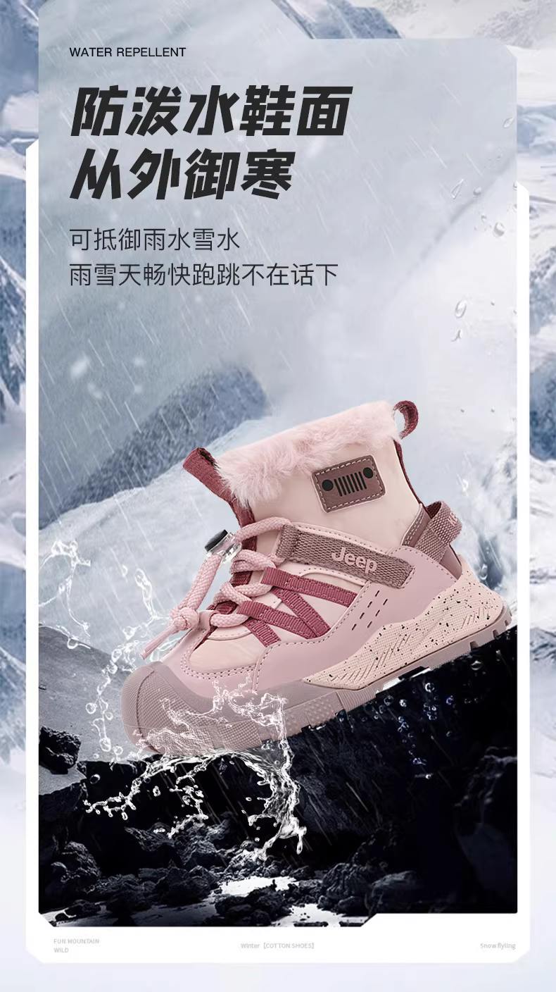 - Giày bốt đi tuyết cho bé trai mùa đông 2025 mới, lót lông cừu ấm áp, giày cotton cỡ lớn, giày đi tuyết chống thấm nước cho bé gái