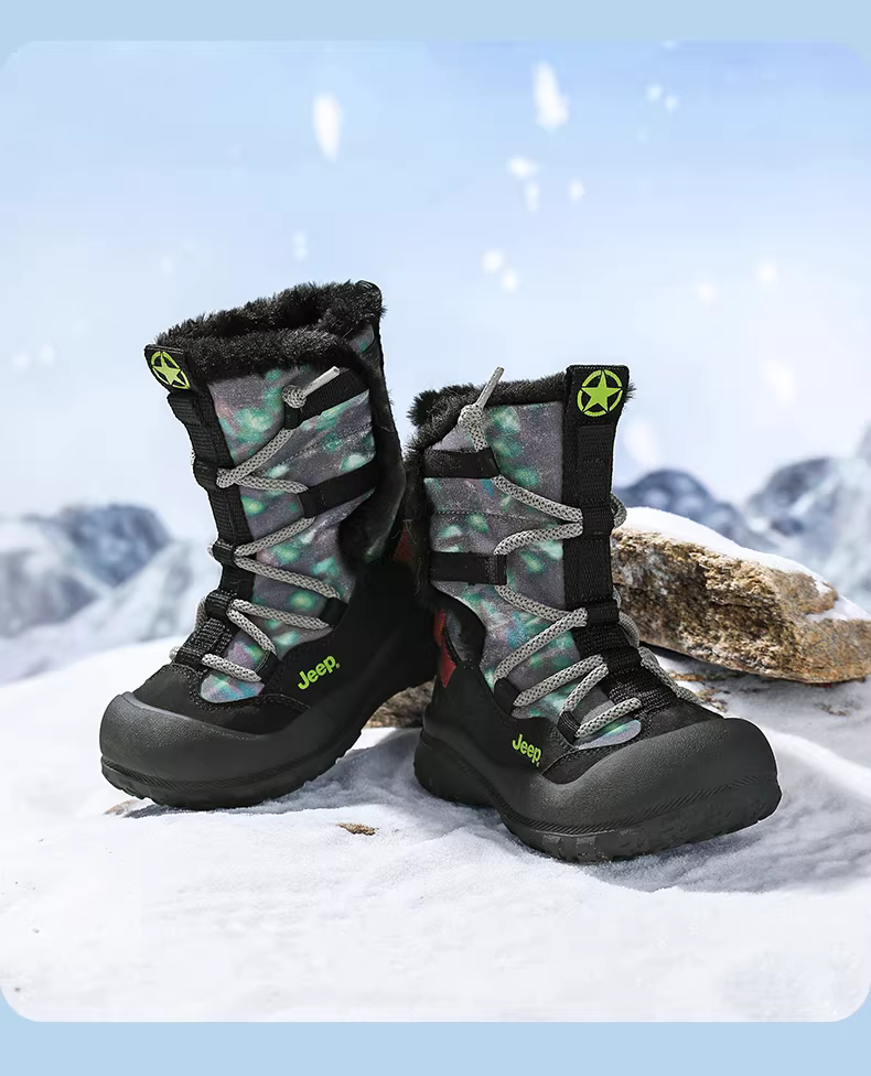 - Giày bốt đi tuyết cho trẻ em Jeep, mẫu mùa đông mới 2025 ấm áp, lót lông cừu và dày dặn, giày cotton cỡ lớn cho bé trai, bề mặt bằng da, bốt cotton không thấm nước.