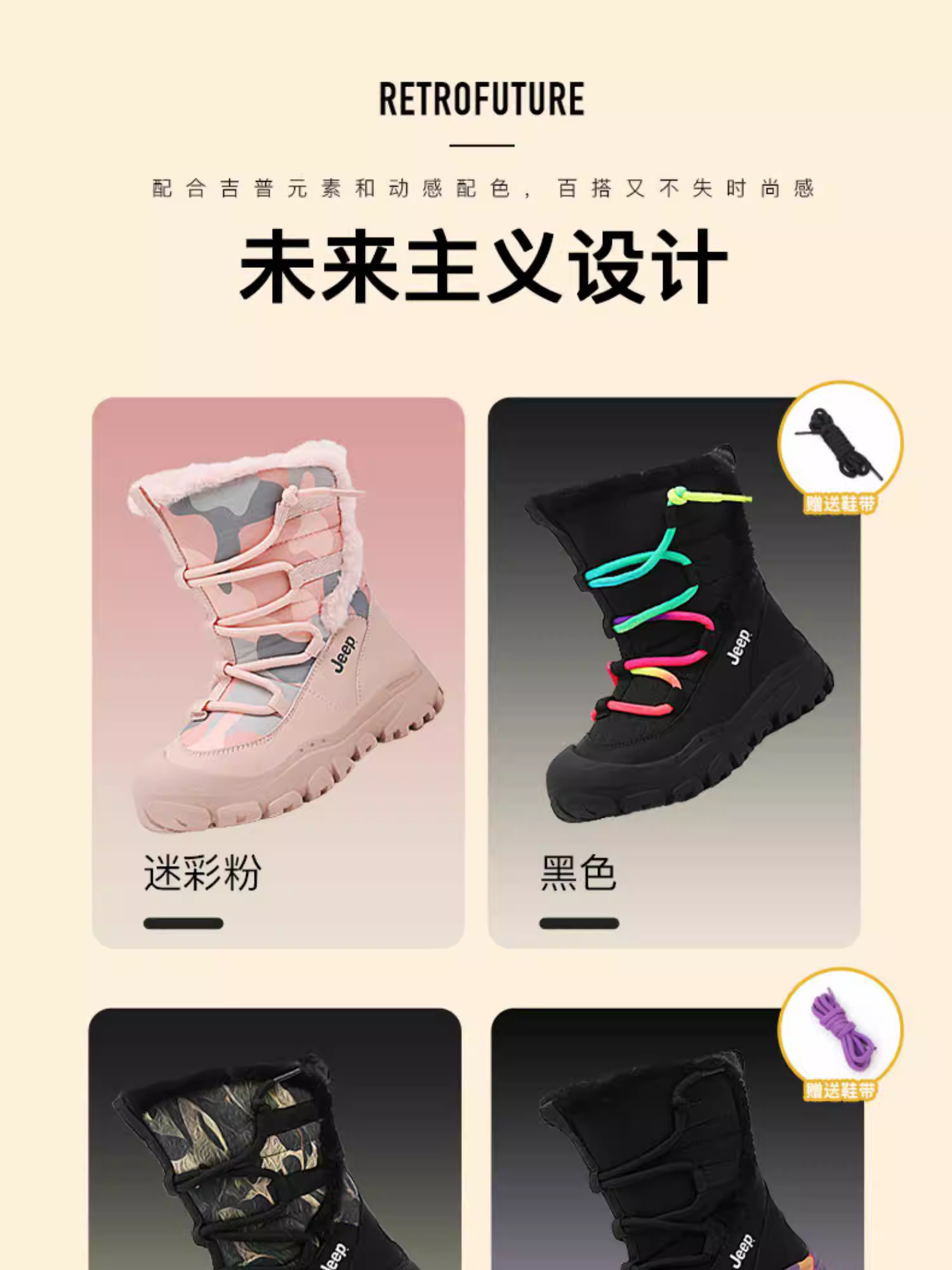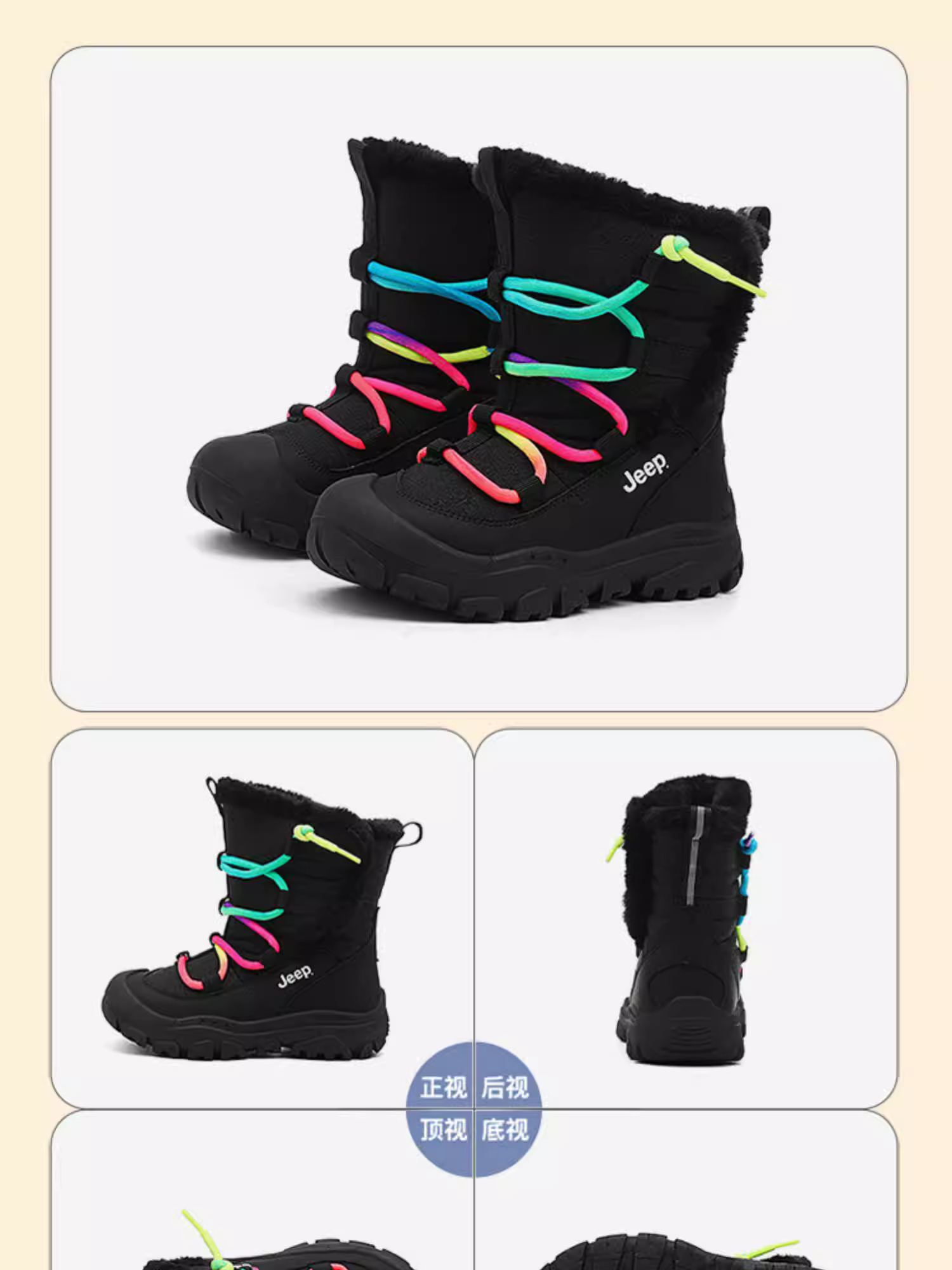 - Giày bốt đi tuyết cho trẻ em Jeep mùa đông lót lông cừu giày cotton cỡ lớn 2025 mới chống thấm nước chống trượt giày lông thú giày cotton đi tuyết cho bé trai