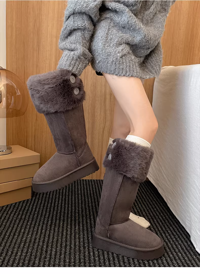 - Giày bốt đi tuyết dài, lót lông cừu, đế dày, chống trơn trượt dành cho nữ, giày cotton ấm áp kiểu cổ điển mùa đông mới năm 2025.