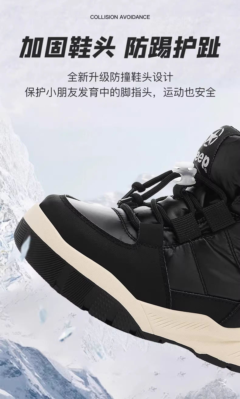 - Giày bốt đi tuyết dành cho nữ Jeep mùa đông 2025 mẫu mới Giày bốt cotton Đông Bắc bề mặt da chống thấm nước Giày cotton cỡ lớn Giày bốt ngắn lót lông cừu dành cho trẻ em