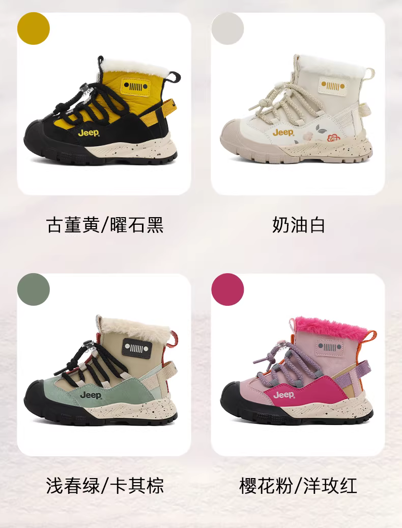 - Giày bốt đi tuyết dành cho trẻ em Jeep dành cho bé gái, giày cotton cỡ lớn chống lạnh lót lông cừu mùa đông, giày cotton bé trai mẫu mới 2025, không thấm nước và chống trượt
