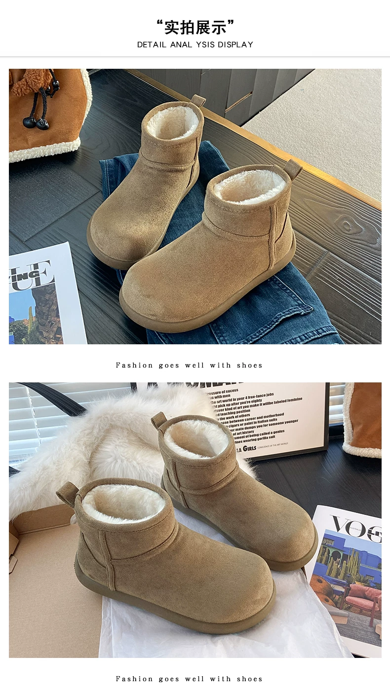 Giày bốt đi tuyết đế dày chống trượt lót lông cừu phong cách Đông Bắc dành cho nữ 2025 Giày cotton đế mềm kiểu Birkenstock mới mùa đông ngoài trời ấm áp
