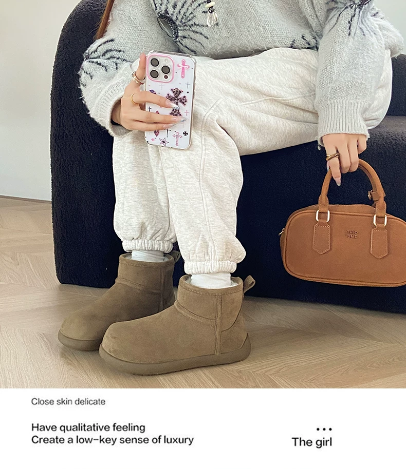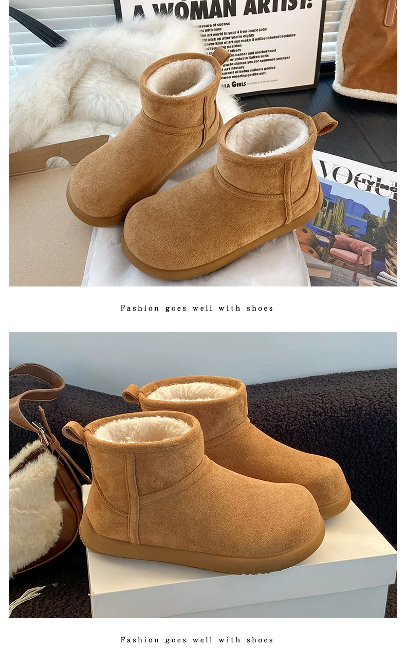 - Giày bốt đi tuyết đế dày chống trượt lót lông cừu phong cách Đông Bắc dành cho nữ 2025 Giày cotton đế mềm kiểu Birkenstock mới mùa đông ngoài trời ấm áp