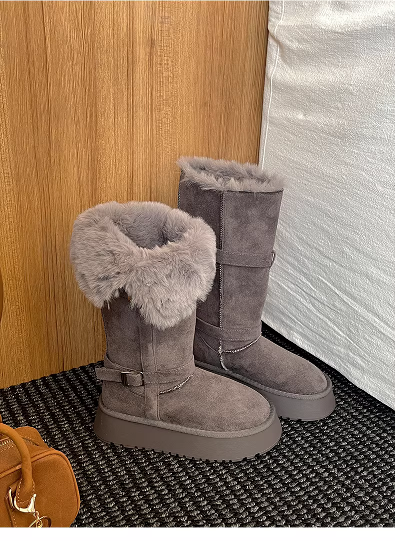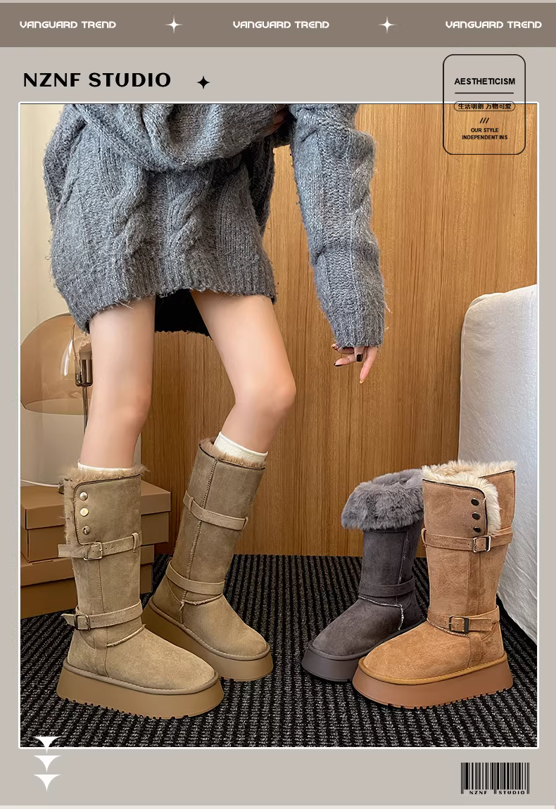 - Giày bốt đi tuyết đế dày chống trượt lót lông cừu phong cách Đông Bắc dành cho nữ, giày cotton giữ ấm tăng chiều cao mùa đông mới 2025.