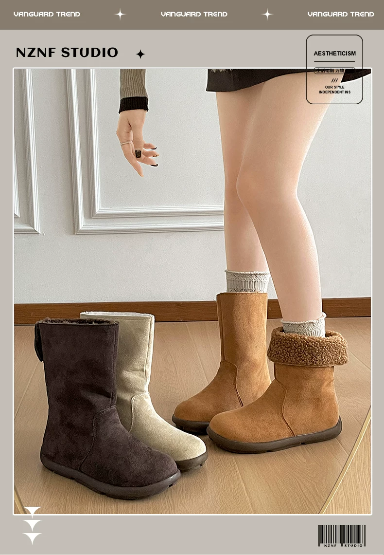 Giày bốt đi tuyết đế dày lót lông cừu chống trơn trượt kiểu cổ điển dành cho nữ, giày cotton kiểu Birkenstock giữ ấm mùa đông mới năm 2025.