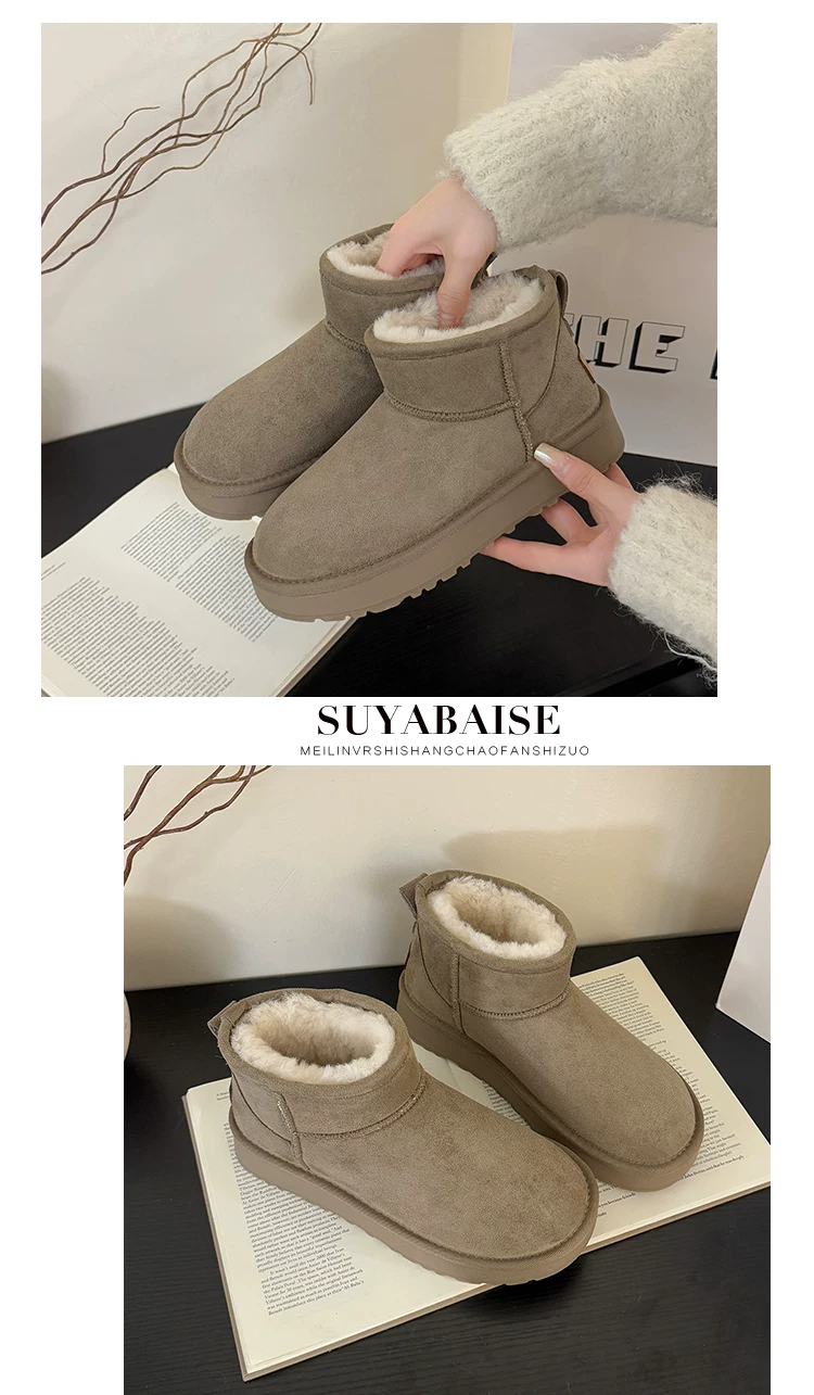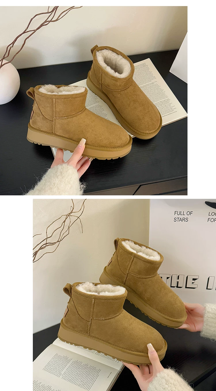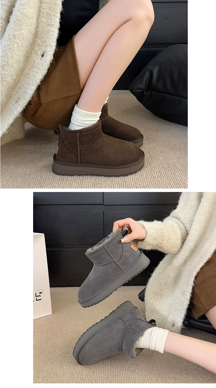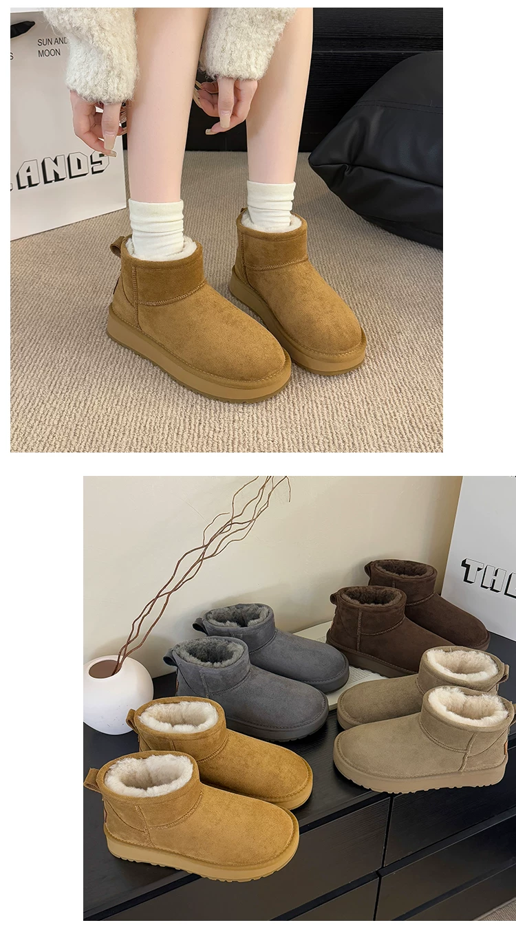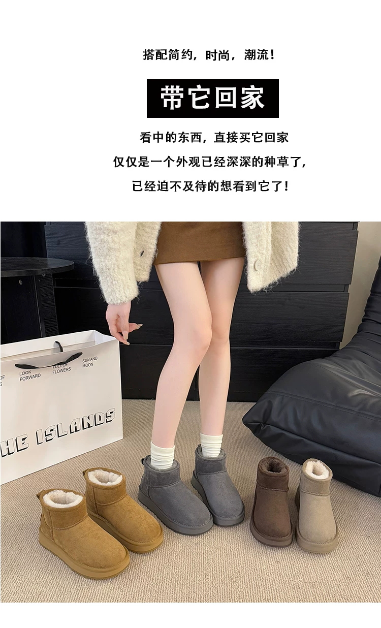 Giày bốt đi tuyết đế dày, lót lông cừu, giữ ấm dành cho nữ, mẫu mới mùa đông 2025, phong cách Đông Bắc, kiểu giày cotton Birkenstock.