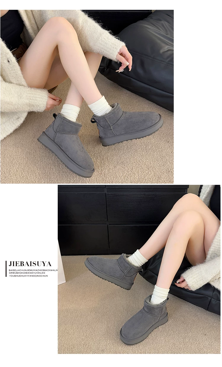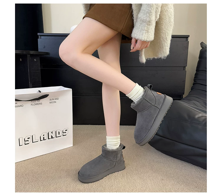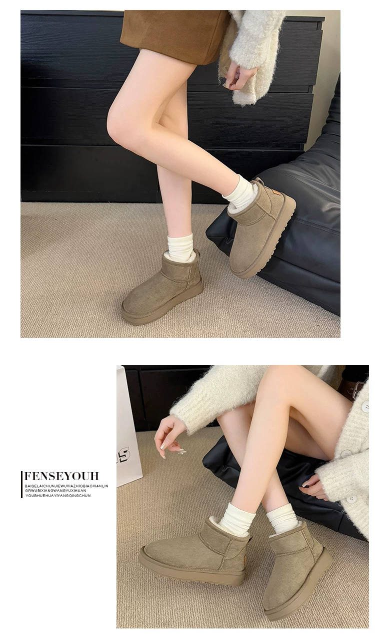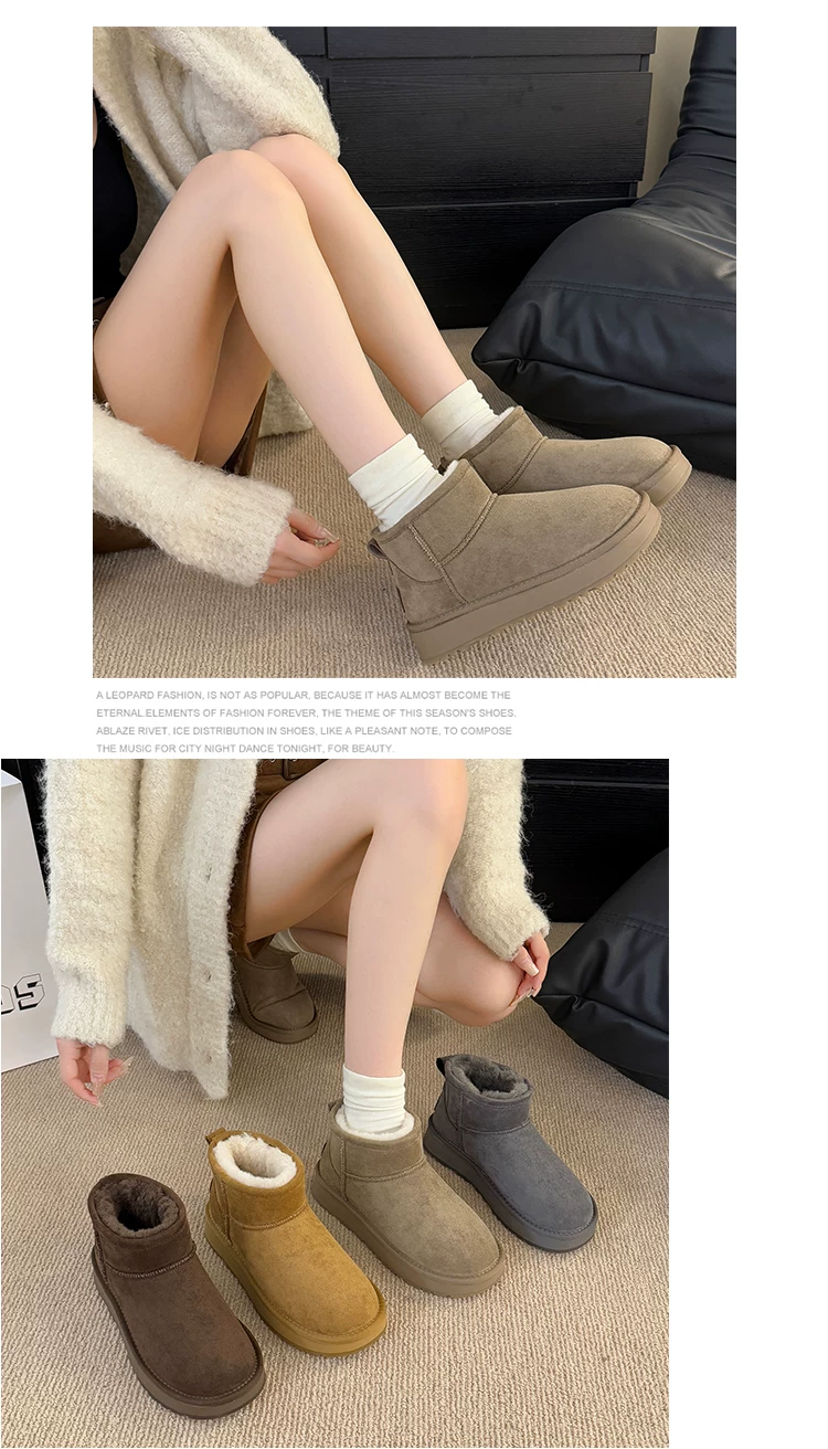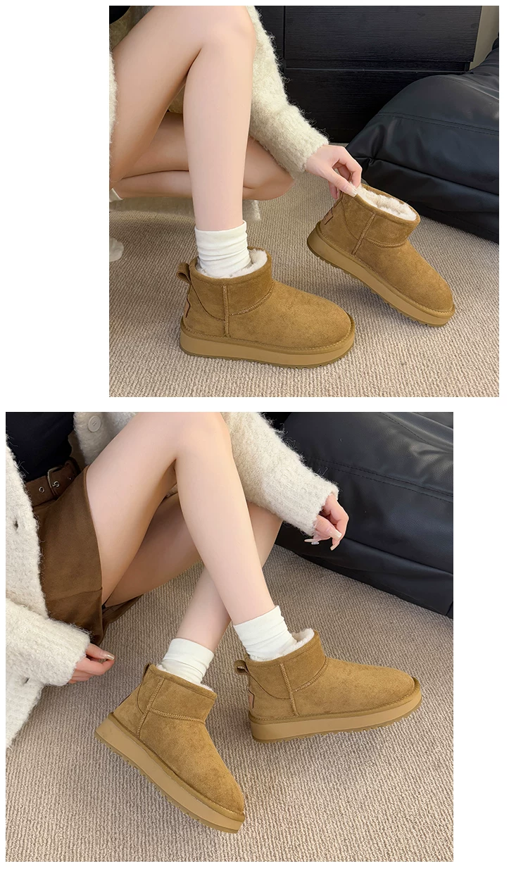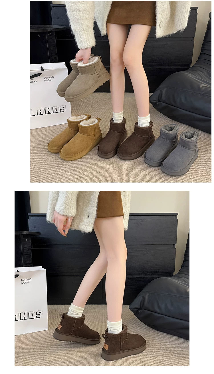 - Giày bốt đi tuyết đế dày, lót lông cừu, giữ ấm dành cho nữ, mẫu mới mùa đông 2025, phong cách Đông Bắc, kiểu giày cotton Birkenstock.