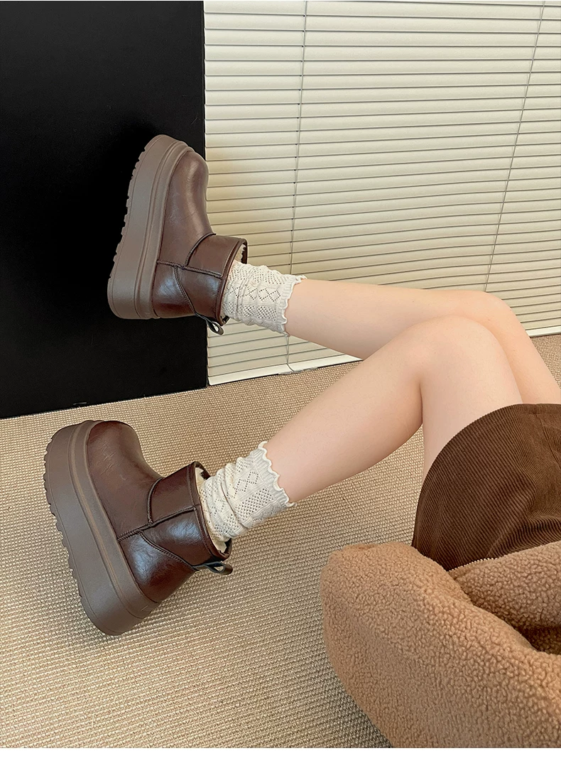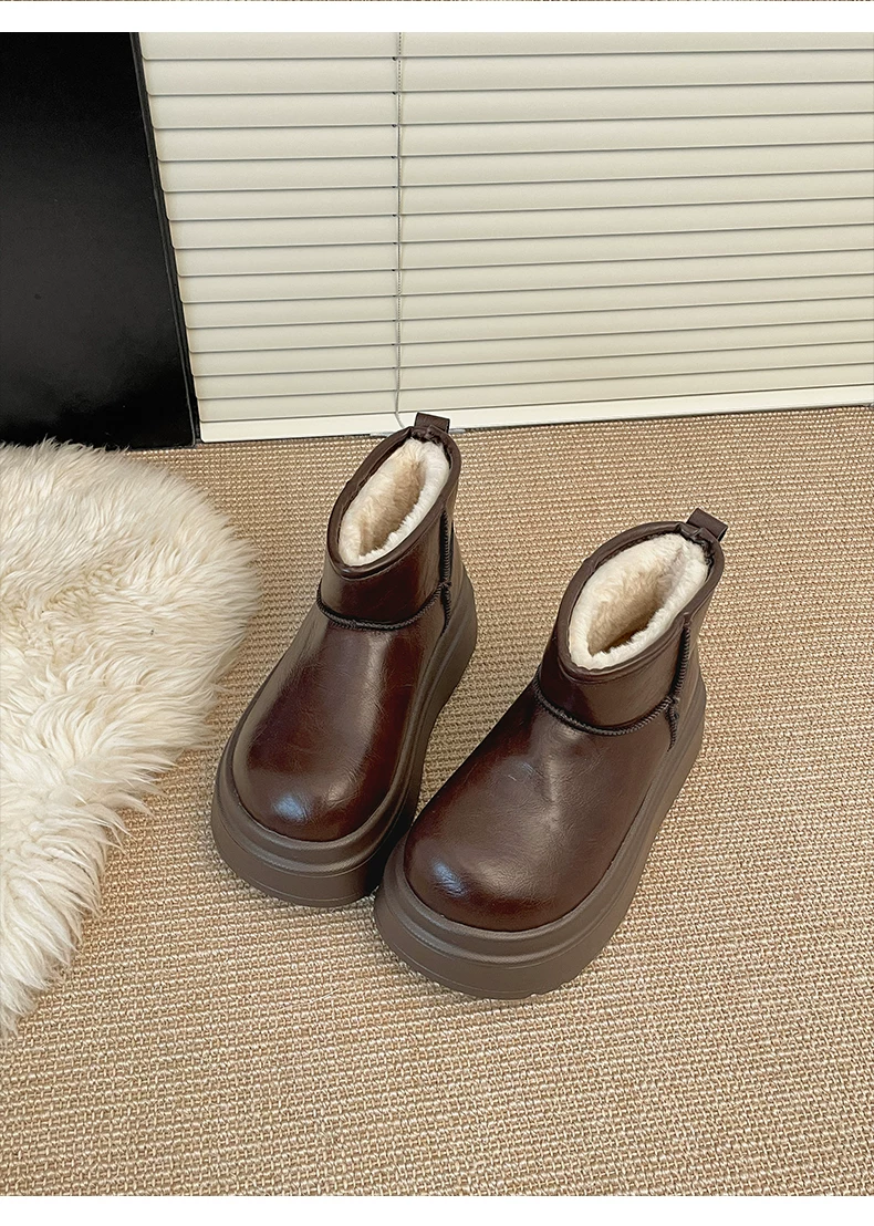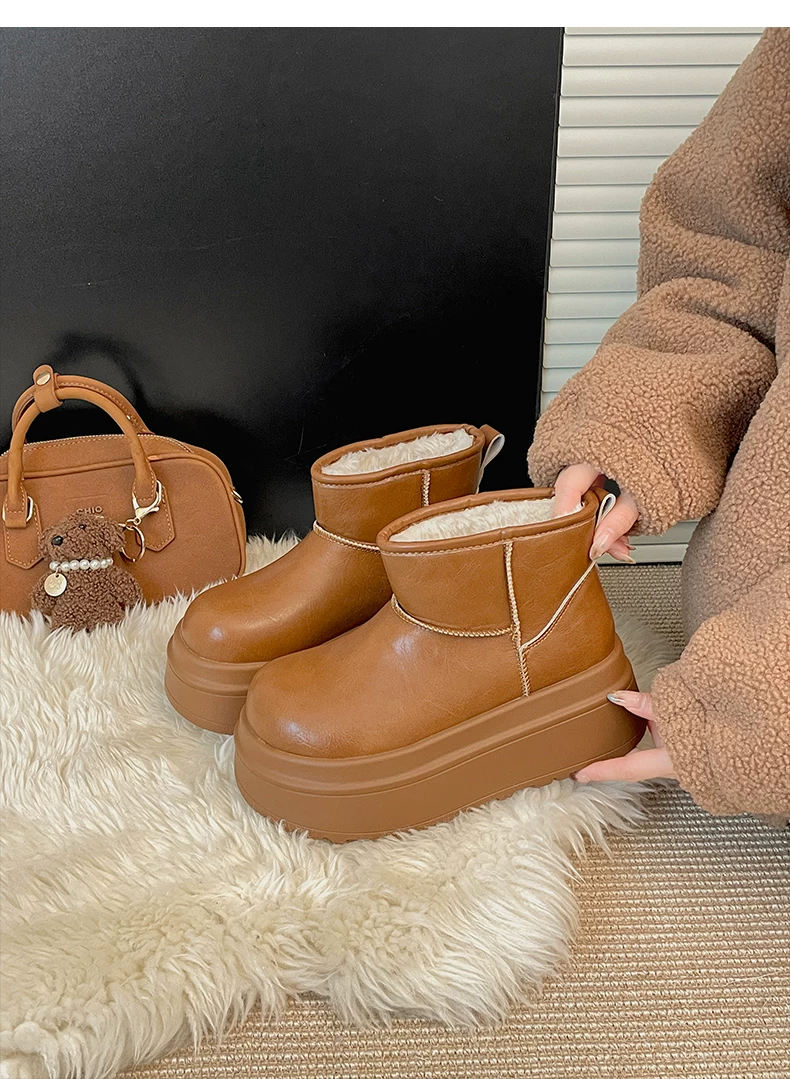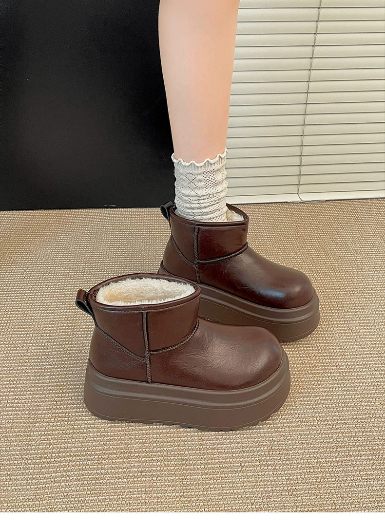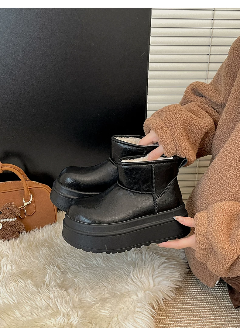 - Giày bốt đi tuyết đế dày lót lông cừu màu đen dành cho nữ, mẫu mùa đông mới 2025, giày cotton giữ ấm chống trơn dày dặn kiểu Đông Bắc tăng chiều cao.