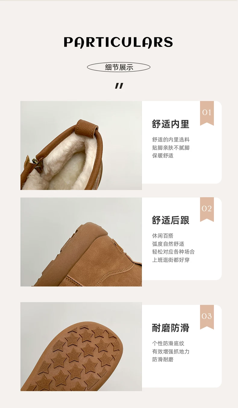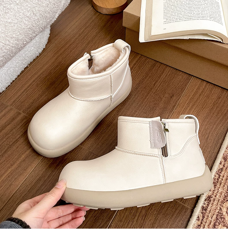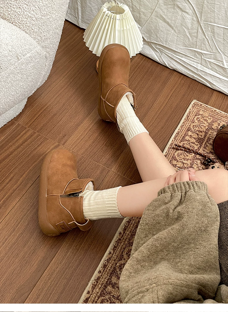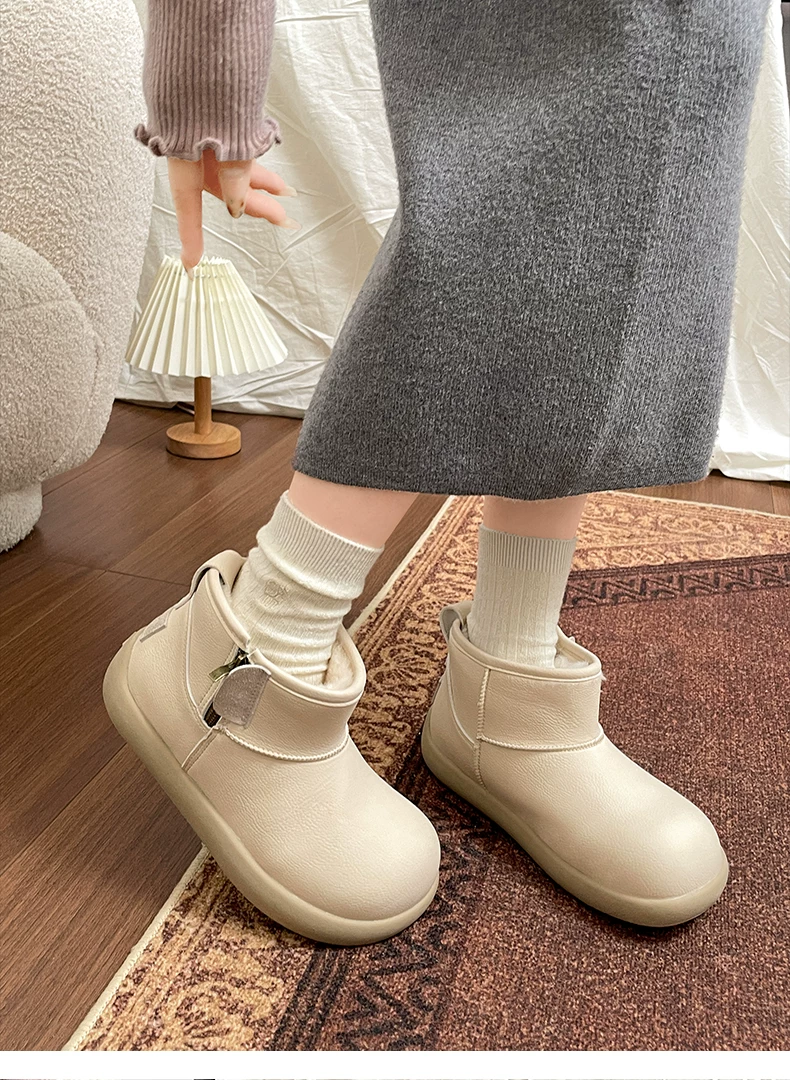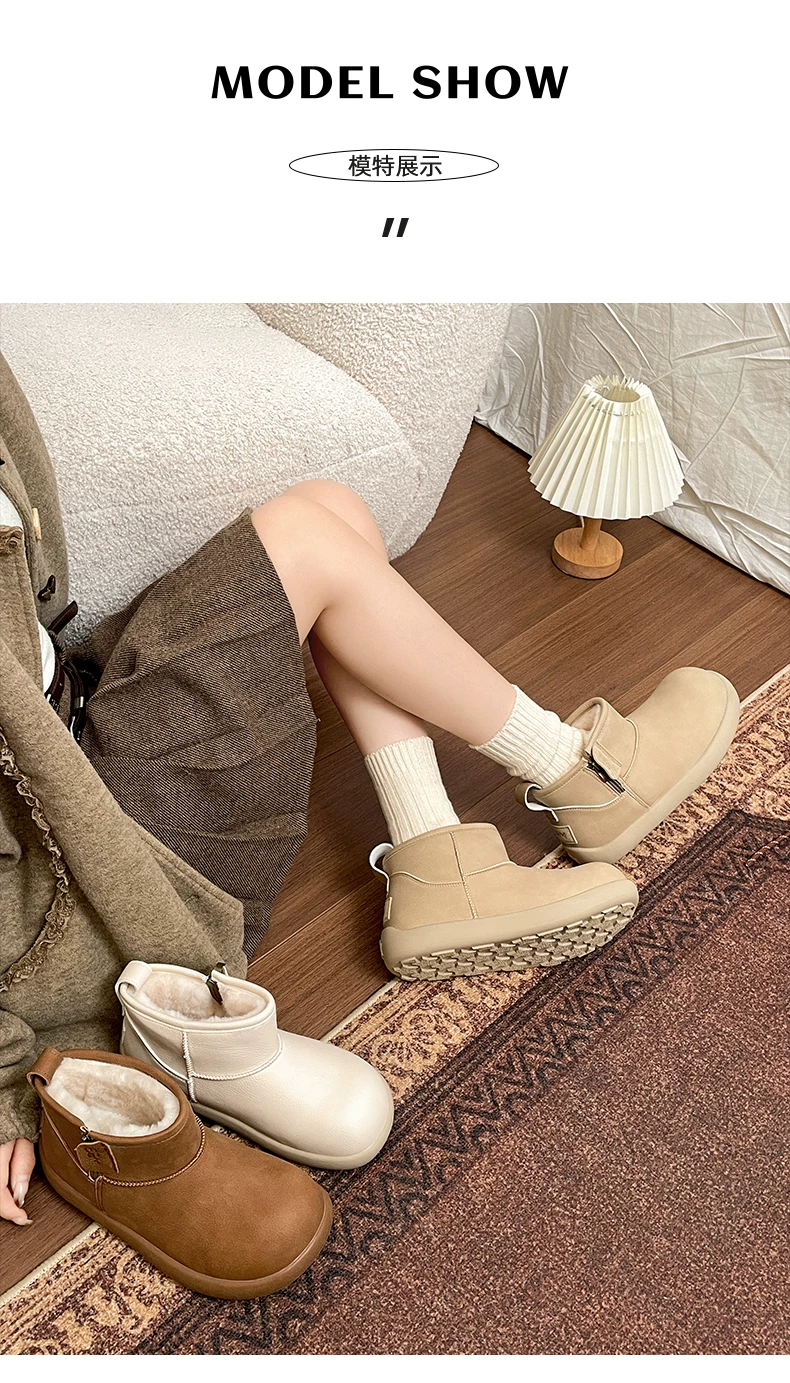 - Giày bốt đi tuyết đế dày lót lông cừu màu trắng chống trượt kiểu cổ điển dành cho nữ, giày cotton kiểu Birkenstock ấm áp mùa đông mới năm 2025.