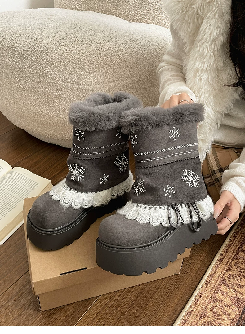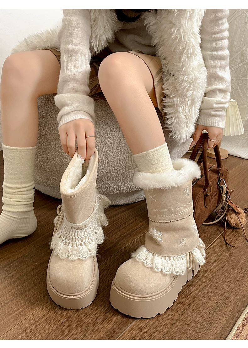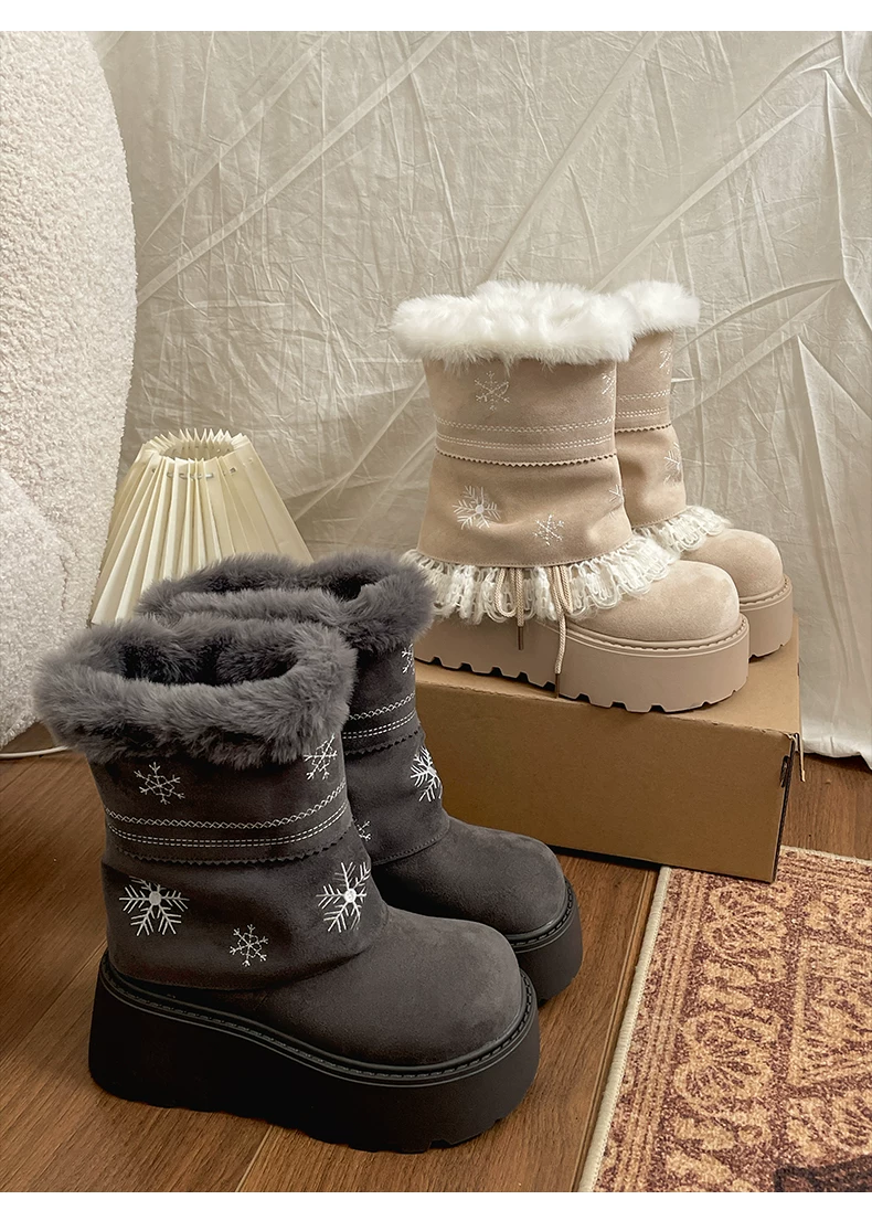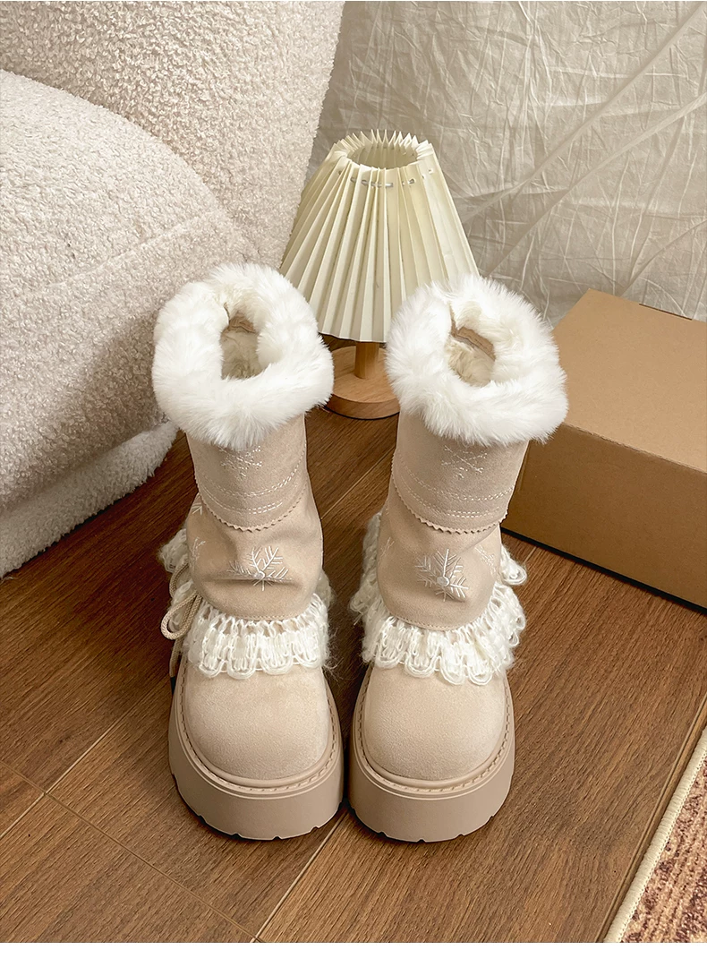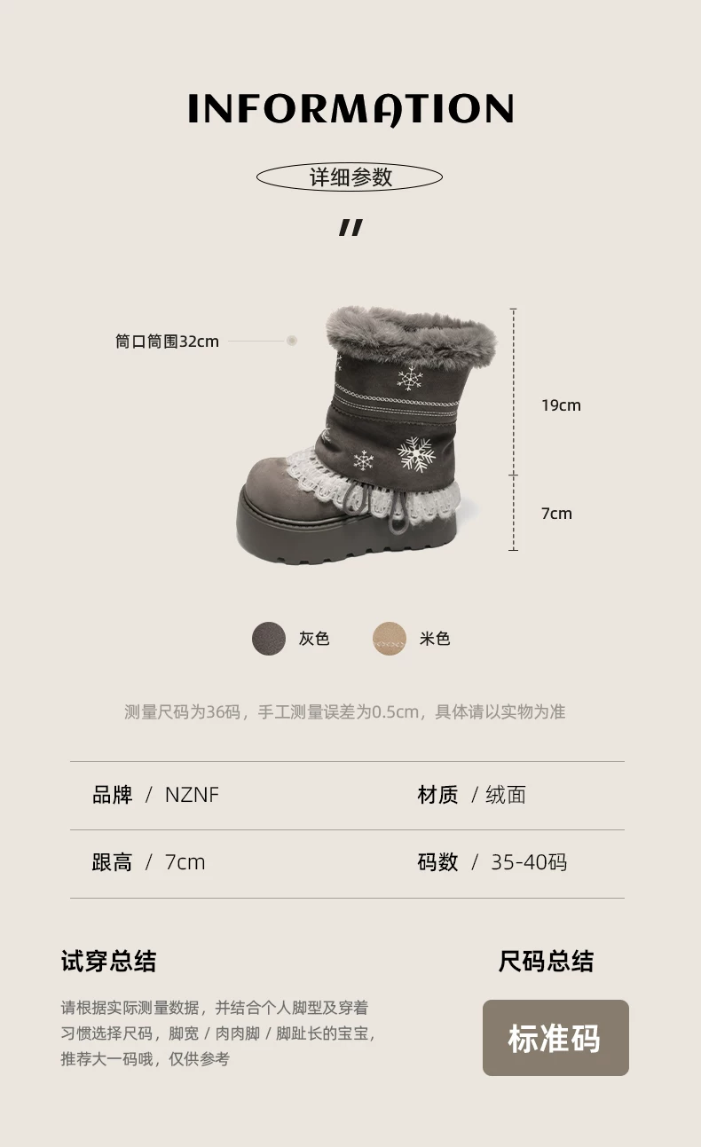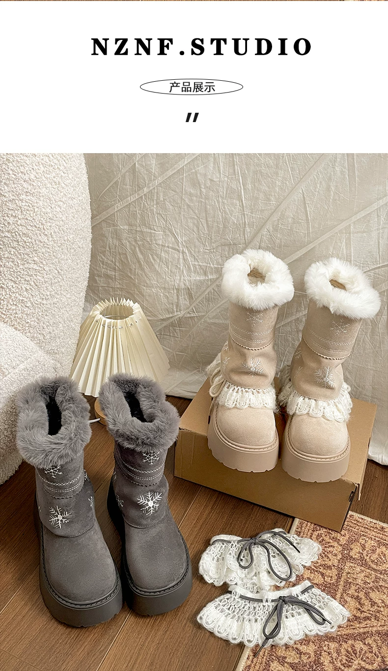 - Giày bốt đi tuyết lông dày đế dày Nan Zai Nan Fei Island dành cho nữ, giày cotton dày giữ ấm mùa đông mới năm 2025.